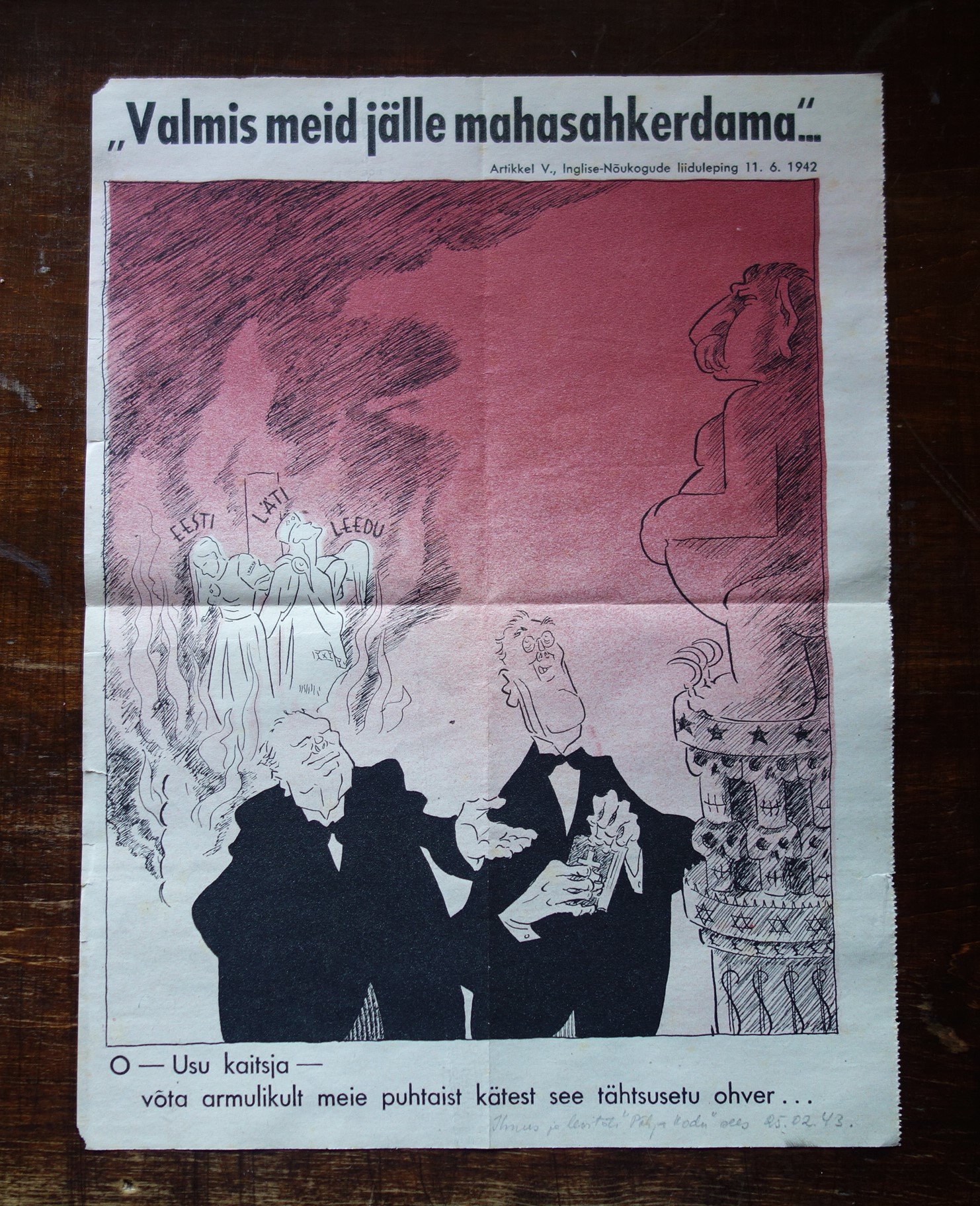Keegi hea inimene on plakati servale infoks kirjutanud ,et see ilmus Narva ajalehe ''Põhja Kodu'' kaasandena 25.02.1943