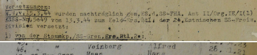 SS Freiwillige Obergrenadier Alfred Veinberg on 1944. aasta 15. märtsil Kloogal asunud 20. SS tagavarapataljonist 20. SS diviisi välitäienduspataljoni. Nimetatud pataljon asus Kehras ja selle ümbruses ning ilmselt on ka eespool näidatud ülesvõte tehtud Kehra perioodi ajal.