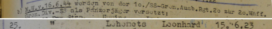 SS Freiwillige Grenadier Leonhard Lehemets oli Kloogal asunud 20. tagavararügemendi 10. (tankitõrje) kompanii koosseisus ja suunati 1944. aasta 16. juunil tankikütina (Panzerjäger) 20. diviisi koosseisu.