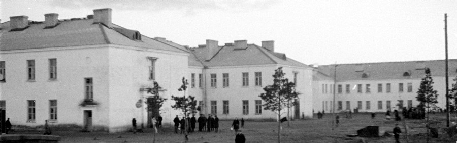 Alumisel pildil on ingerlastest sõjapõgenikud, kes olid majutatud kolme kamokirjades kasarmusse (pildil 1 ja 2 ning nende taga olev kolmas hoone).