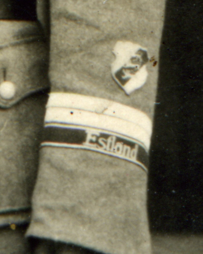Ich verbiete das Tragen von Ärmelstreifen „Estland” und anderer Ärmelabzeichen (Wappenschild der Landes), ausser den, die von den Ausbildungs und Ersatz Einheiten 20 besw. von der 20. Waffen-Gren. Division-SS ausgegeben sind. Dasselbe gilt für selbst angefertigte Spiegel.