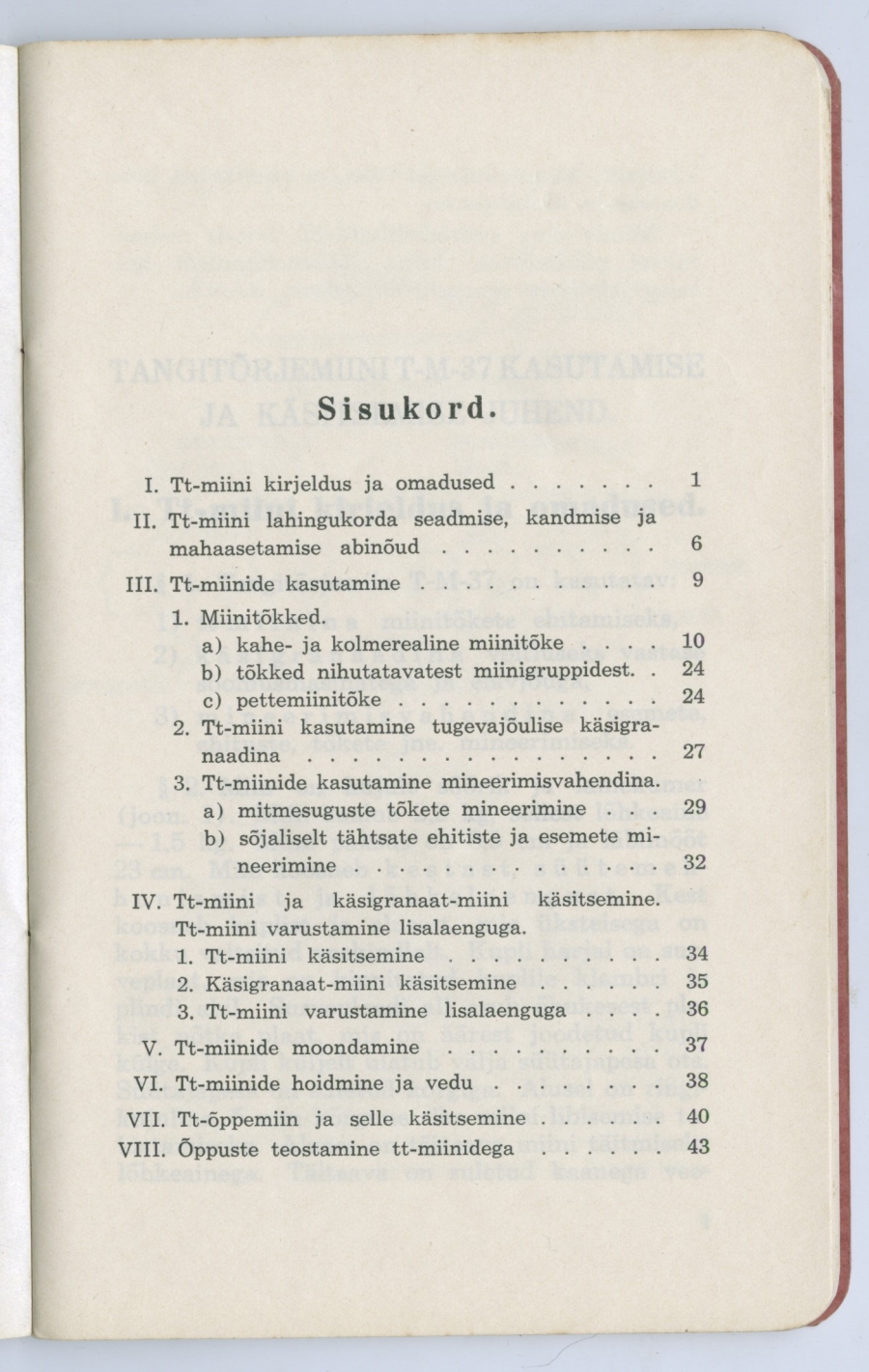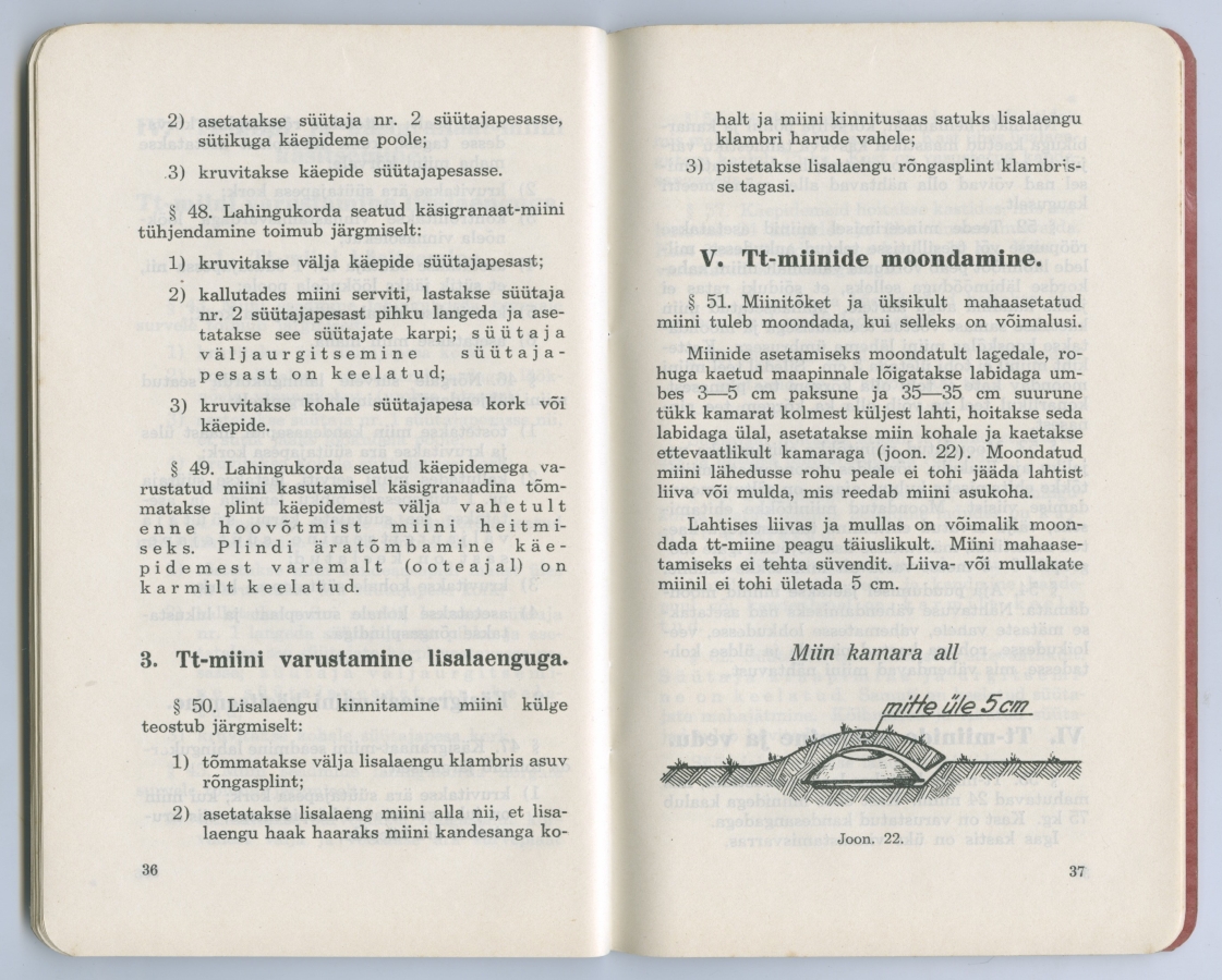 "1940. aastal andis Sõjavägede Staabi VI osakond välja selle ainulaadse käsigranaat-miini TM-37 kasutamise ja käsitsemise juhendi, kus on põhjalikumalt kirjeldatud miini tööpõhimõtet, tõkete rajamist, hoiustamist ja transporti."