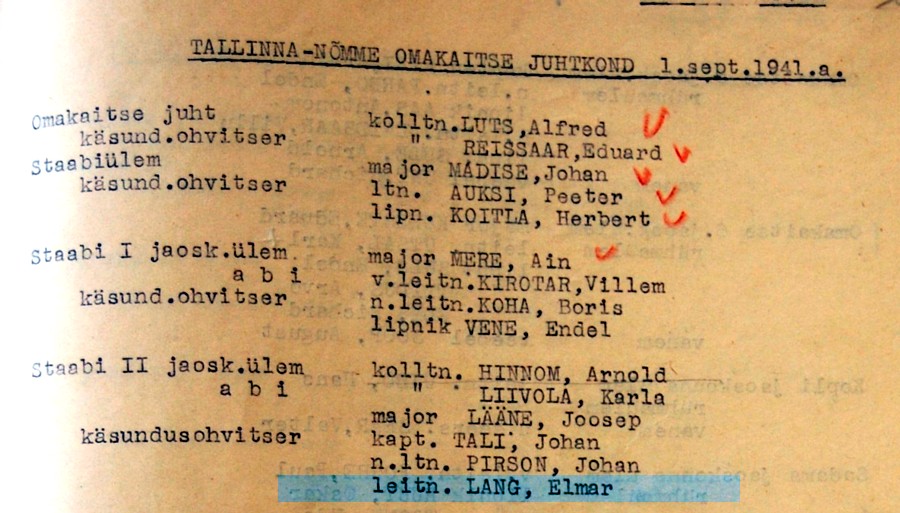 1941. aasta sügisest käsundusohvitserina Nõmme Omakaitses