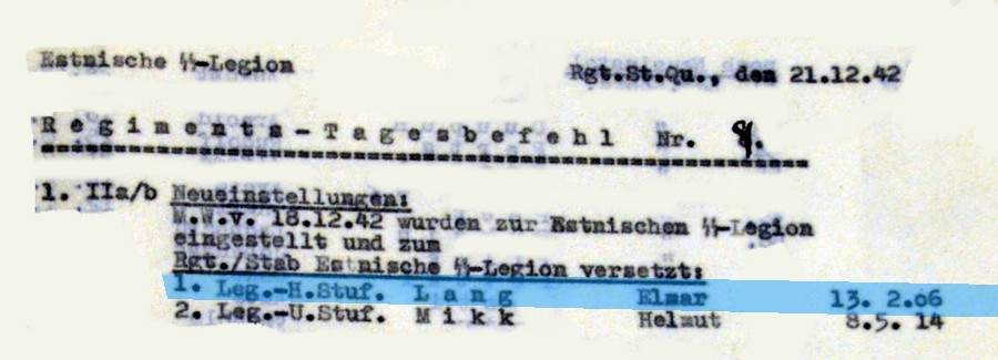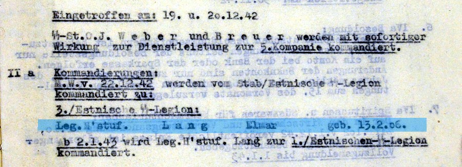 Enne I Pataljoni lahkumist diviisi "Wiking" koosseisu, asendatakse Leg. H.Stuf. Lang H.Stuf. Raudsooga.