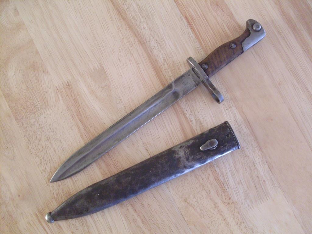 Internetiotsing (ja järelepärimine muudest foorumitest) näitavad, et selliseks ümberkujustatud saksa tääki pole kunagi olnud üheski armees.. Seega ainus variant, et keegi on taastanud vana butcher-täägi, kujundades talle ka täiesti uue Bowie-tüüpi tera. Kusjuures kogu töö jätab hoolika ja ütleks, et maitseka mulje - teostus on korrektne ning muudetud tääknuga vägagi heades proportsioonides. Tääk on jätkuvalt funktsionaalne ja lukustuks enamusele Mauser-püssidest.