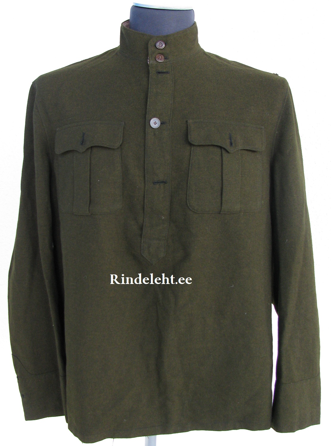Gimnastjorka stiilis puuvillane särk. Tumerohelist värvi. Nööpidel ega mujal markeeringuid ei ole. Varajane EW (Kaitseliit?) või Tsaariarmee?