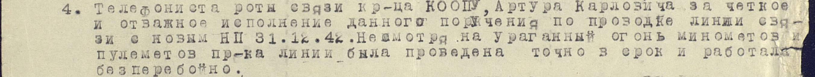 Artur-Eduard Koopuu (sünd. 1917 a.) Saaremaalt Kaarma Suurest vallast võeti mopiga sõtta ja märtsist 1942 on arvel 27-ndas laskurpolgus.Vande andnud 14.märtsil 1943 ja olnud telefonistiks.Autasud : Kuulsus III järk nr. 464926 Sõjateenete medal ( varajane kruviga variant) nr. 196897 ja Võidu eest Saksamaa üle.