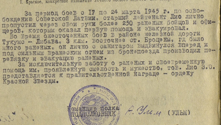 921 LP meditsiiniteenistuse vanemleitnant Endel Lio. Punatäht 2121639 on saadud Kuramaa lahingutes. Üsna lähedane number eelmise postituse Punatähele.
