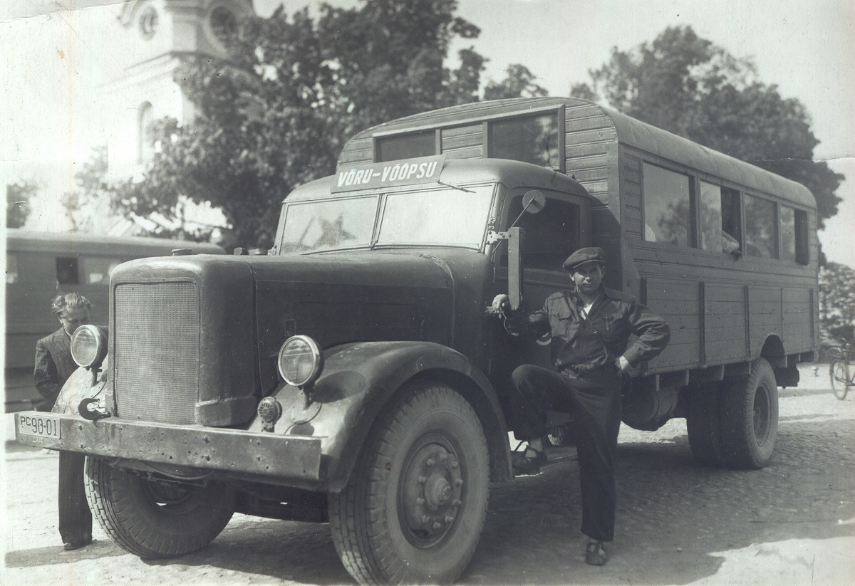 Trofeedest valmistatud bussid Võrus 1947 (Võrumaa muuseum via muis.ee)