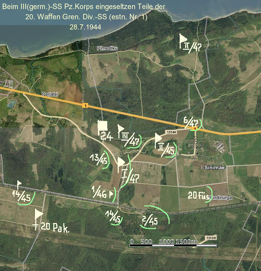 Eesti Diviisi 47 rügemendi III pataljoni 28. juulil Lastekodumäel vangistatud komandöri sõnul mehitavad Lastekodumäge läbivat kaitseliini diviisi "Nordland" , brigaadi "Nederland" ja Eesti 20. SS-diviisi üksused.