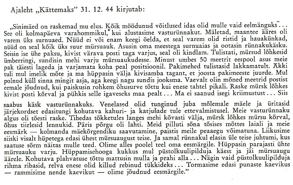 Re: 47. rügemendi I pataljon Sinimägede lahingutes