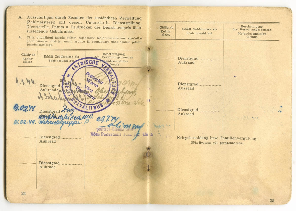 uscha kirjutas:See palgaraamat on välja kirjutatud SS-Ersatzkommando Estland Pärnu Kaitseväeringkonna teenistuses olnud reamehele Juhan Suura'le.