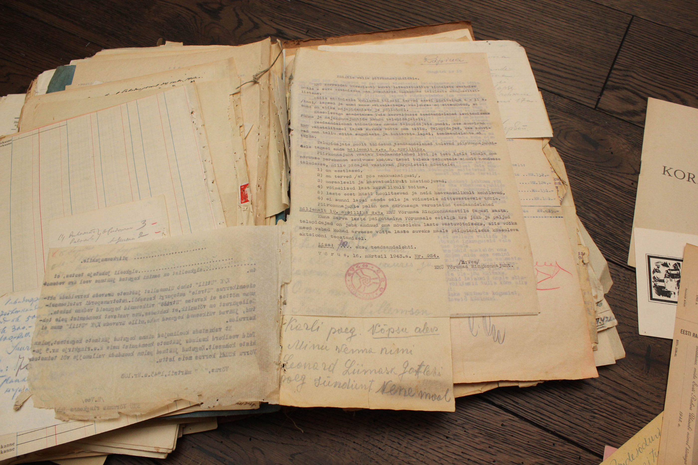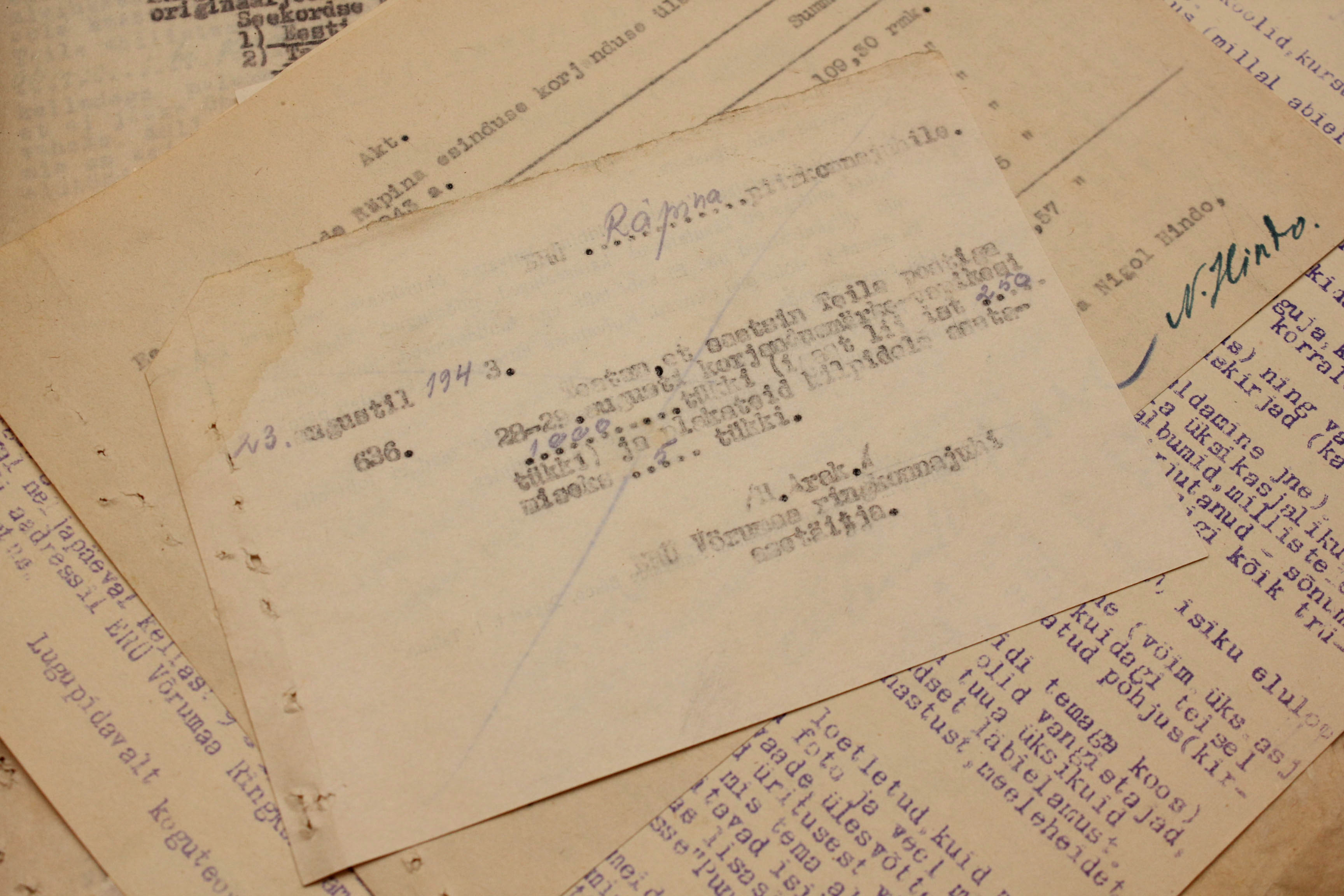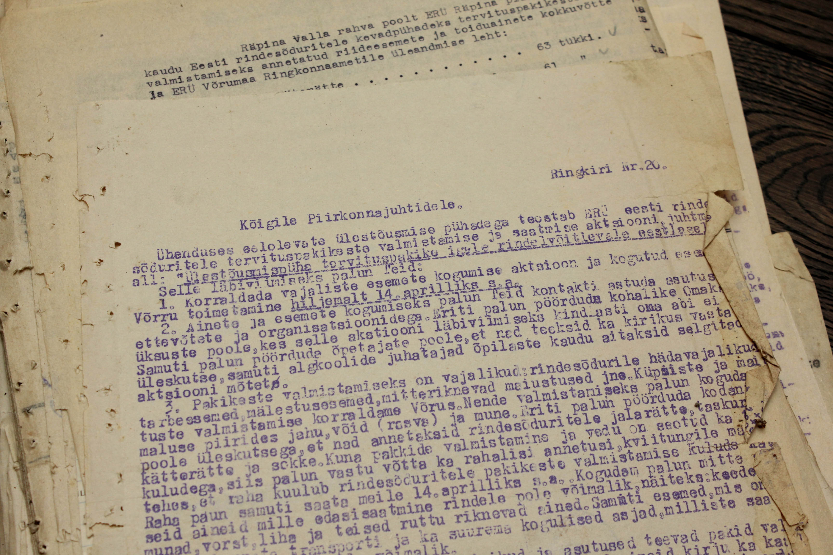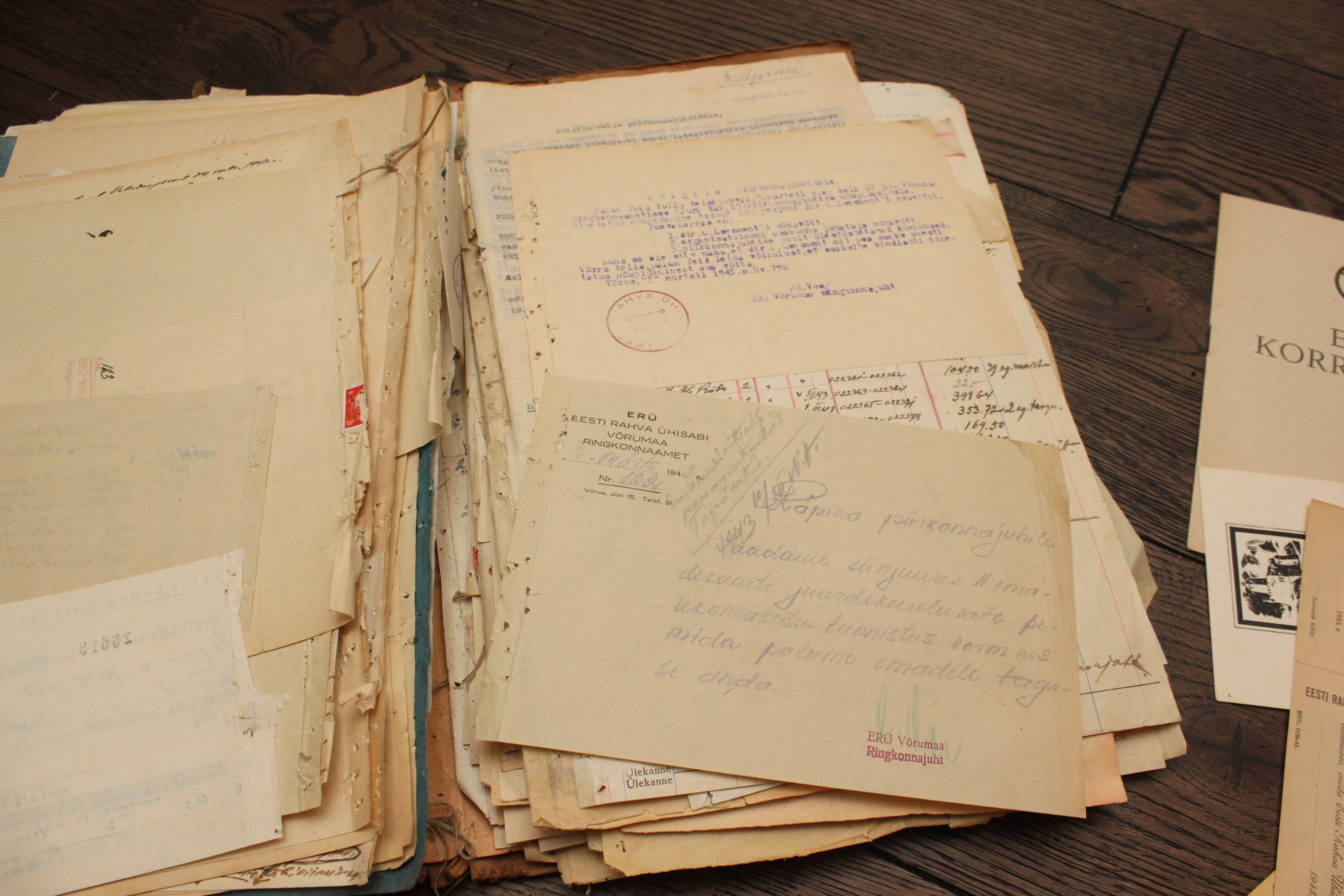 Eesti Rahva Ühisabi Räpina komitee arhiiv 1941. aasta lõpust kuni 1944. aasta suveni. Ei hakanud ükshaaval pabereid üle lugema aga neid on väga palju sadu ja ei ole välistatud kui isegi neljakohaline arv. Hind 800€ - kuna ma täpset dokumentide arvu ei tea siis ma garanteerida ei saa aga usun, et ühe lehe hind jääb 1€ piiridesse.