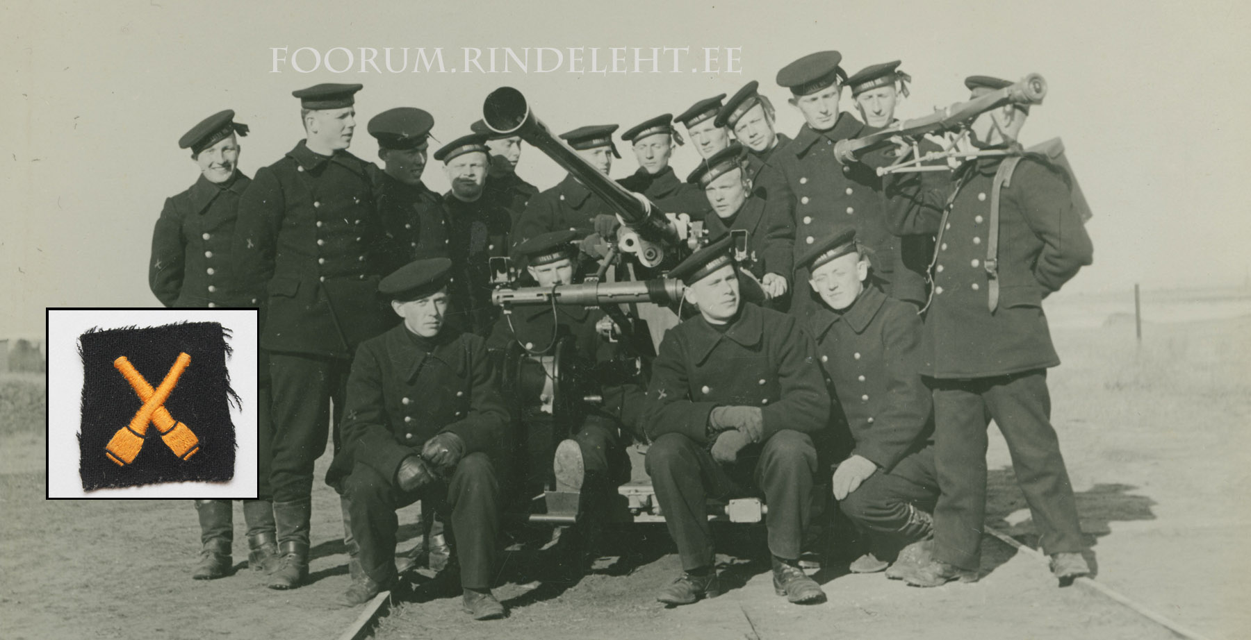 Aegna MK õhutõrjepatarei sõdurid ja 37 mm kahur, paljudel meestel on varrukatel näha MK komendoride erialamärki.
