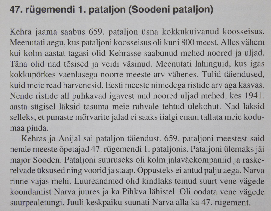 Re: 47. rügemendi I pataljon Sinimägede lahingutes