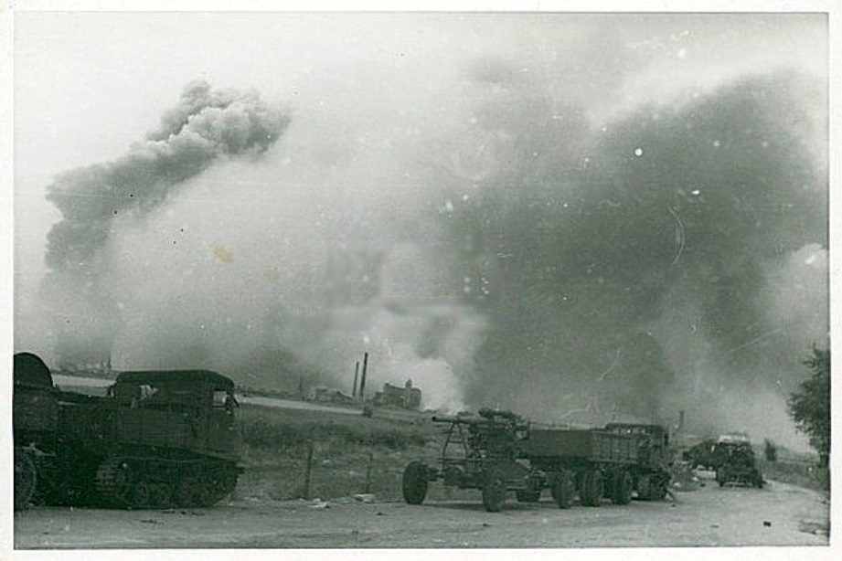 Esimene punaväelase laip lamas tankitõrjekraavi juures. Mees oli kukkunud otseti, püss põiki laiba all. Ja siis hakkas neid punaväelaste laipu tulema. Neid oli üsna palju mõlemal pool maanteed. Osa oli sinna lihtsalt loobitud ka teelt. Ja siis tuli mitmesaja meetri ulatuses vahetult enne kanali silda midagi arusaamatut, hirmsat, ebamaist. See oli lausa jube. Jätsin jalgratta väntamise, peatusin ja seisin keset maanteed (liiklust polnud mingisugust). Seda, mida nägin, ei oska vist keegi kirjeldada. 7 – 10 põlenud veomasinat, mõnel taga kahurid, kaks vedukit, ühel taga kahur. Kõik autod põlenud või pooleldi põlenud, paar tükki lihtsalt teelt kraavi lükatud, ülejäänud inertsist üle madala kraavi sõitnud. Ja ümberringi laibad, laibad. Küll veomasina kastides, põlenud kabiinides, veduki pinkidel kahelt realt istuvad punaarmeelased. Surm oli tabanud neid seal. Vedukijuht poolest kehast kabiini aknast väljas, pea purustatud jne. Kõik see košmaarne vaatepilt oli kaetud hommikuse kastega ja päike sillerdas kastetilkadel.