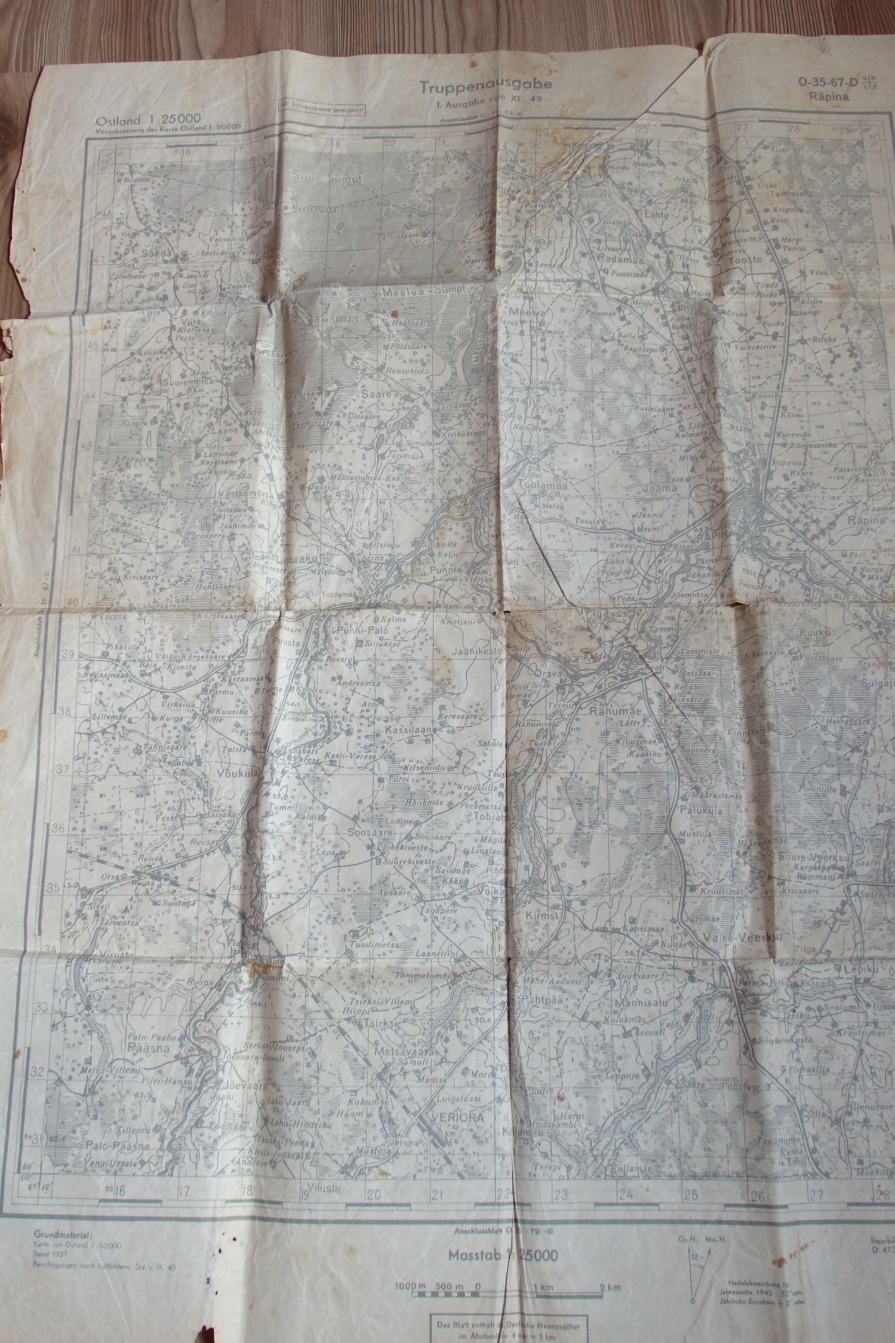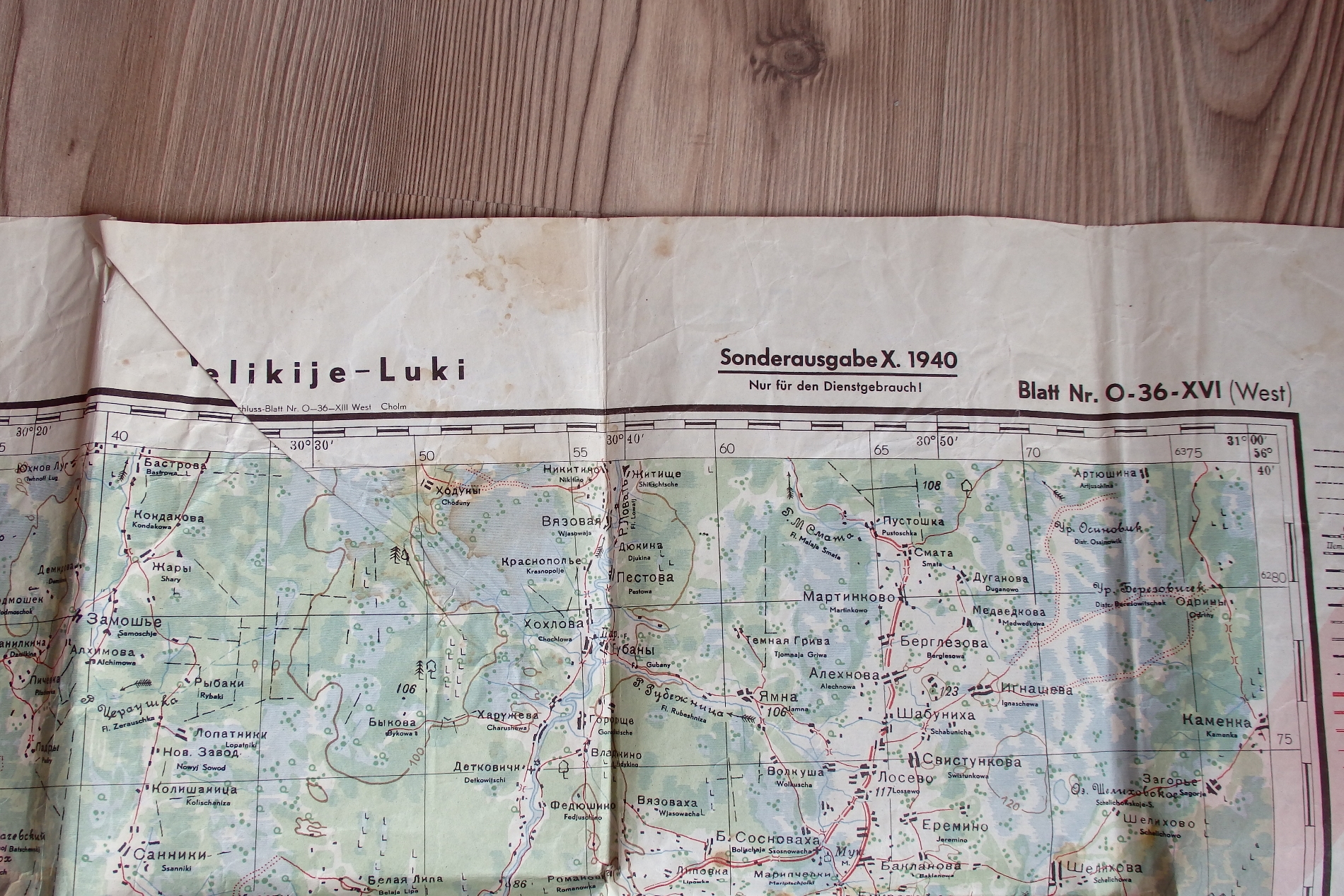 Esivanemate talust tuli välja selline Saksa aegne kaardileht. Ühel pool Räpina ja teisel pool Velikije Luki ning punasega X peal ning samuti tundub, et VL pool oleks justkui poolik? Kas keegi oskab öelda täpsemalt, kas tegu on terve kaardilehega? Miks VL poolel punane X? Jne..