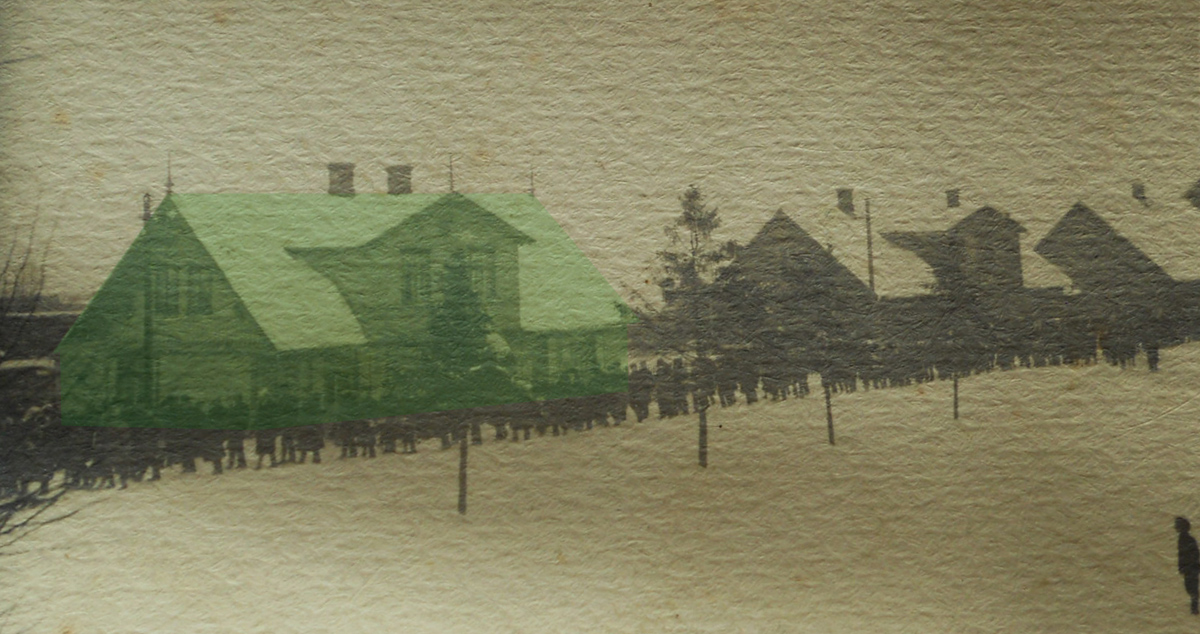 Kui Mõisakülaga mingisugust seost otsida siis kohaliku paraadplatsi ääres üks sarnane maja oli küll, mis selle seeria fotodel ka näha on. Aga samas eks need majad olid omal ajal kõik enam-vähem sarnased. Mõlema fotode majade ette on istutatud kidurad kuused / männid.
