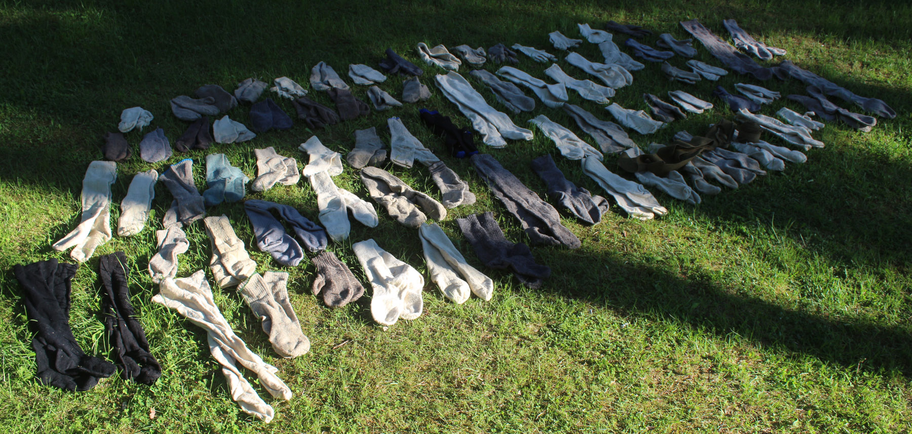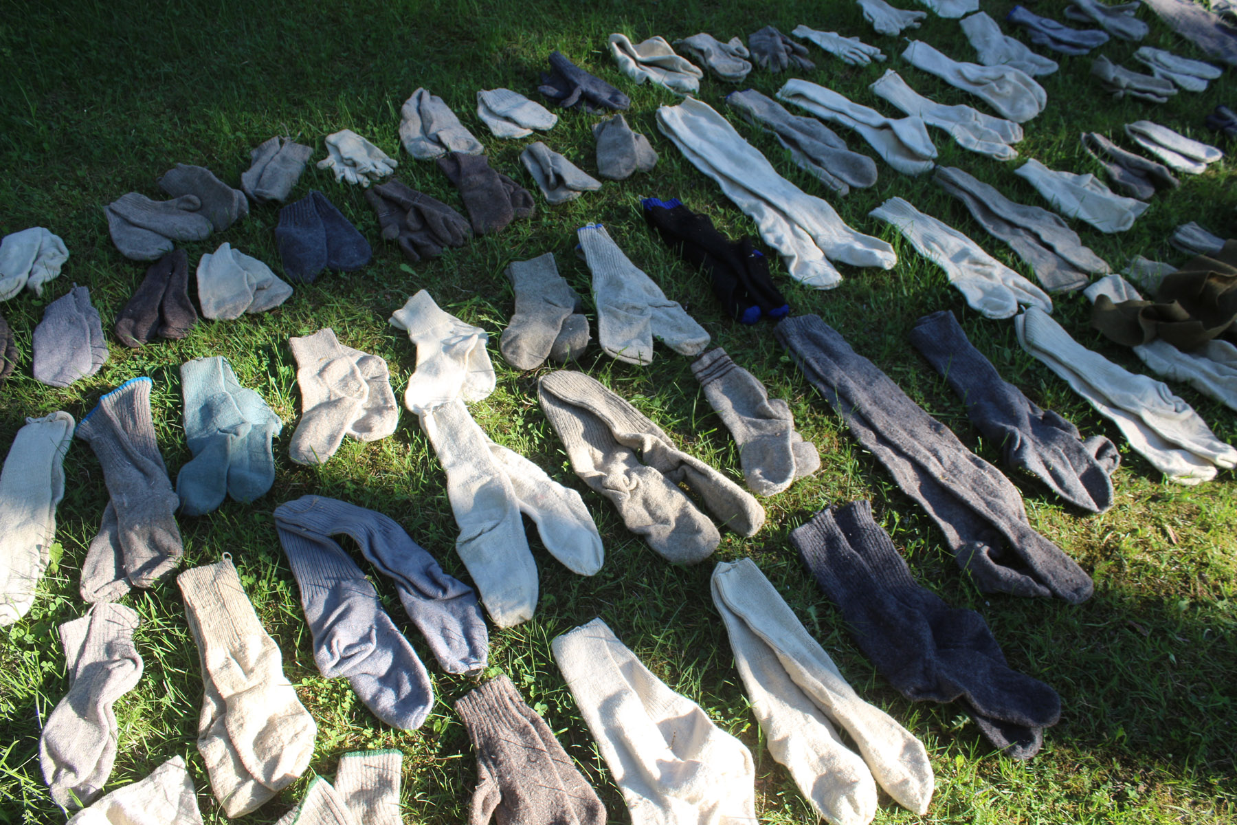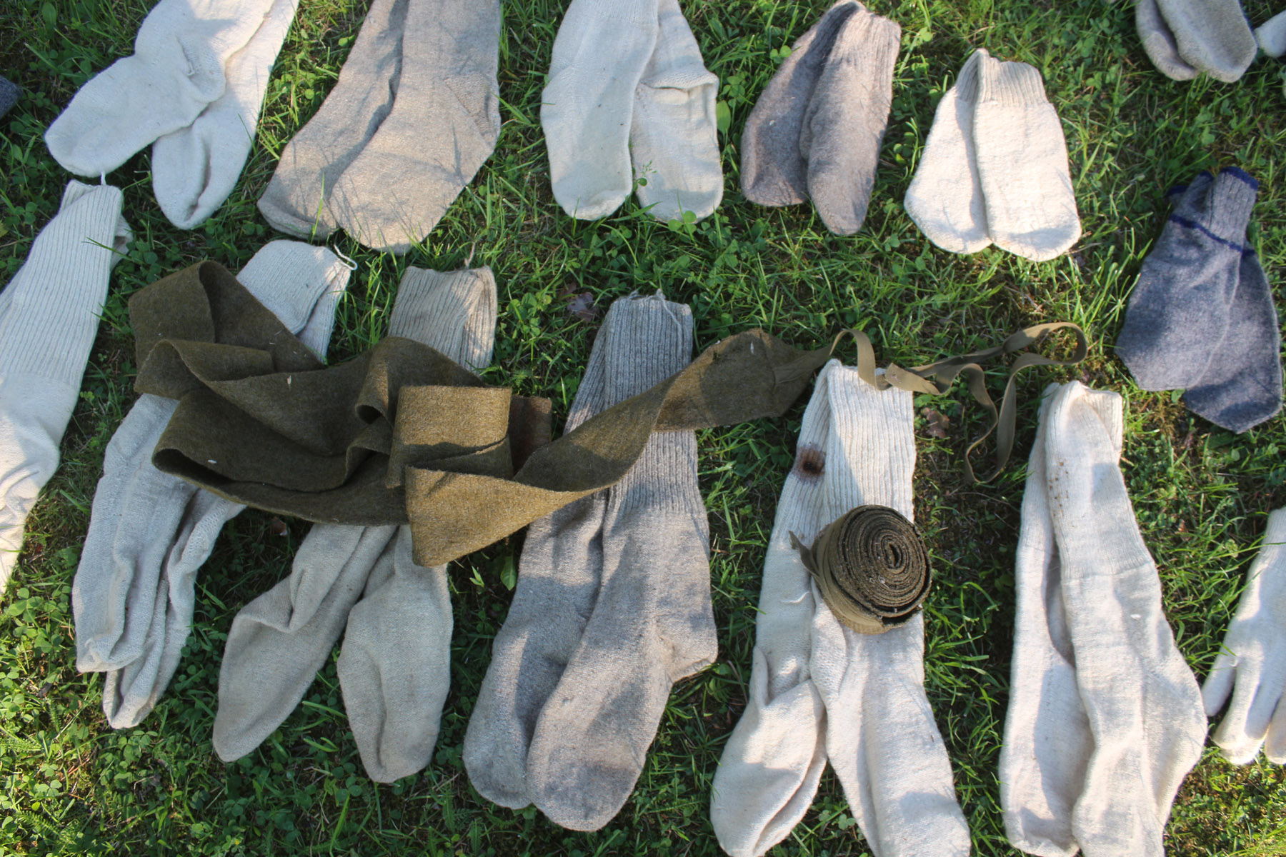 Kaheksakümmend paari sokke, sukki, kindaid ning üks komplekt sääresidemeid. Kraam on pärit 1939. aastal rajatud Punaarmee Paldiski ladudest aga päritolult peaks kogu varustus olema Eesti kaitseväe jagu, mis peale meie armee likvideerimist Punaarmee kasutusse läks.