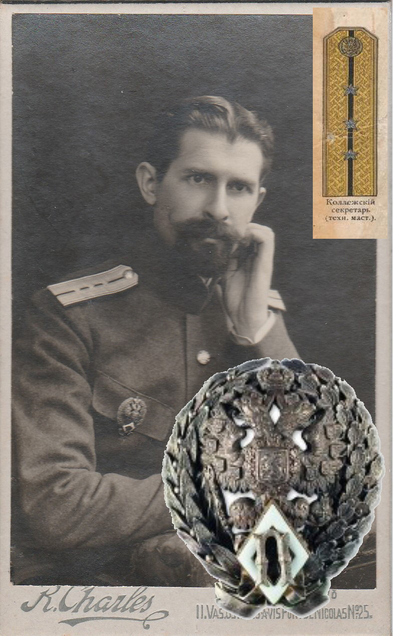 Sõjaväe arst (farmatseut ka, классный фельдшер ka) kolleegiumi sekretäri auastmes.