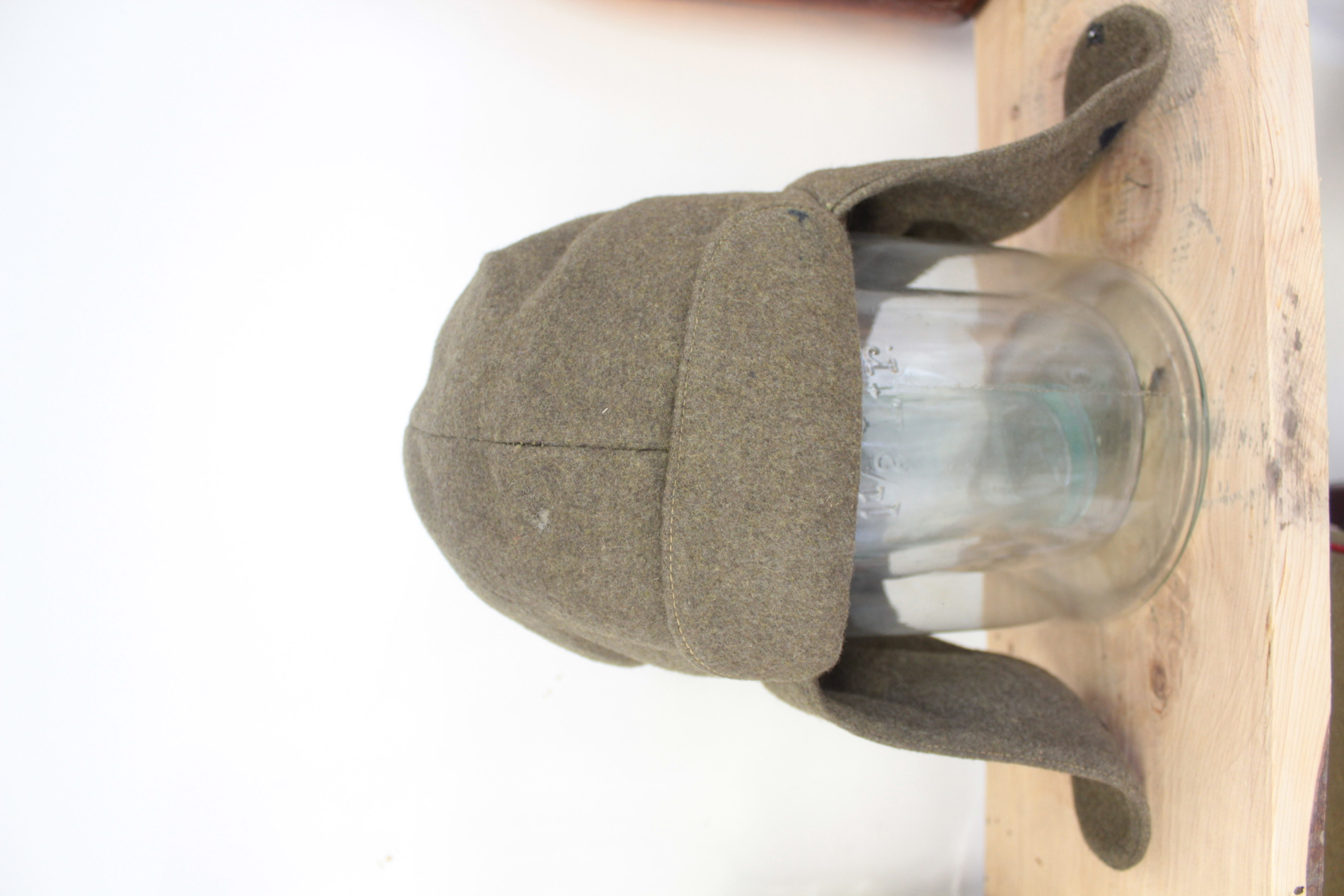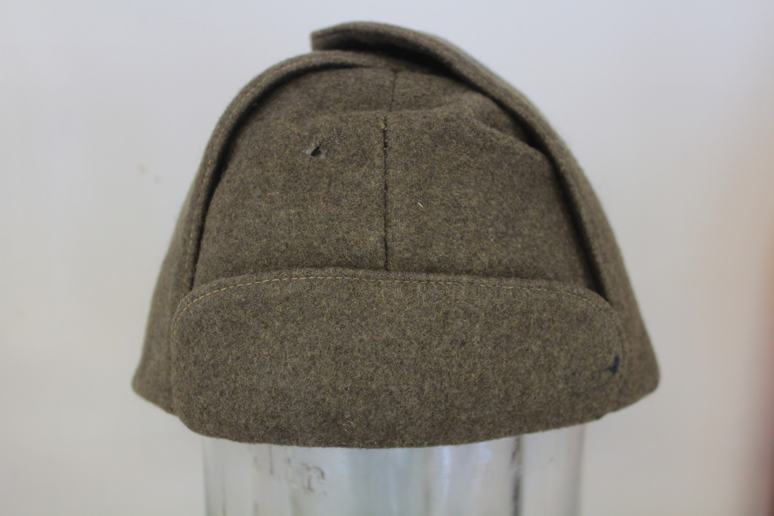 VS või 1920-ndate algusaastate talimüts. See mudel oli kasutusel juba VS ajal ja kanti veel mõned aastad pärast sõda nagu piltidelt paistab. Väheliikuvam väikese nokaga variant. Otsaees näha mütsimärgi klemmide auk. Ühel kõrval on tindiplekk. Manuses on ainus pilt mida olen näinud sellise tüüpi mütsiga. Müts pärineb Draamateatrist kuhu sattus nõukogude ajal kui Ajaloomuuseumi varusid anti sinna lõikuda.