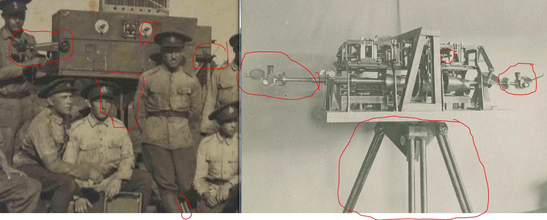 Seade tundub olevat algeline - tõenäoliselt seda erinevatele suurtükkidele umber häälestada ei ole võimalik (ilma Papello suguse mehe modifikatsioonideta). Ma varem arvasin, et kaugusemõõdik võib olla seadmesse integreeriutd - see ei ole nii. Kogu optika, mis seadmes on - on ainult nende väljaulatuvate varraste otsas. Lennuki esialgseks sihikule püüdmiseks on peegel kirbuga. Edasine täpsem sihtimine ja sihikul hoidmine toimub läbi optika. Optikat on vaja ainult seadme suunamiseks lennukile. Tavaliselt on sihtimisaparaatidel vertikaal- ja horisontaalsihtimine jagatud kahe mehe vahel. Siin võib olla vähemalt üks sound dubleeritud, nii et vajadusel saab ka üks mees seadet suunata - kuigi see on raskem. Nende kahe valge niblaka kaudu sisestatakse tõenäoliselt kaugust (kõrgust?). Ma ei ole kindel, kas see seade tuult arvestab Niblakad liigutavad "nõelasid" või "lugemispäid" koonustel - sellega muudetakse eri telgede vahelisi ülekandeväärtusi.