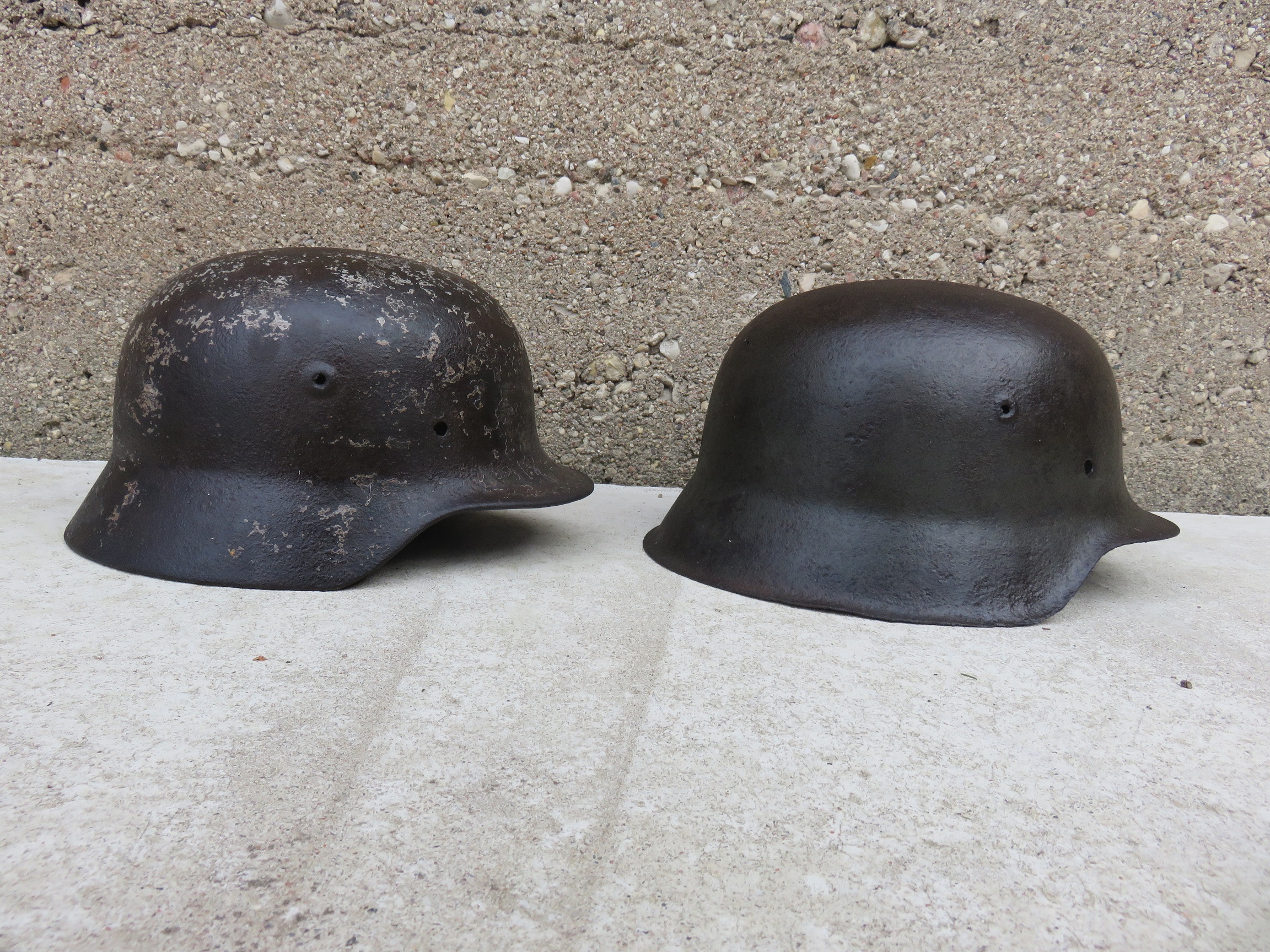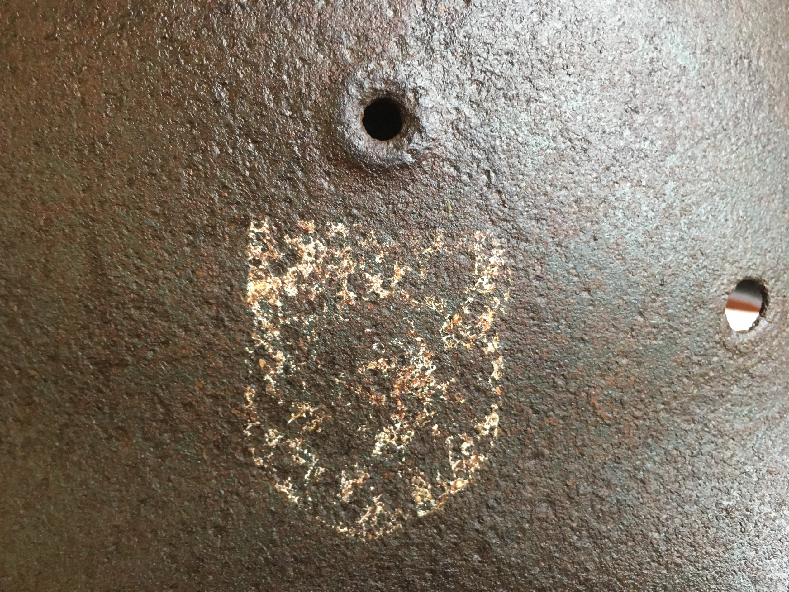 Mitte midagi ulmet, aga aastaid talu metallihunnikus vedelenud m42. Kiiver kahjuks üldpildis sõel.Peale leotust tuli paremalt poolt isegi musta randiga dekaal ja natuke rohelist värvi välja. 8)