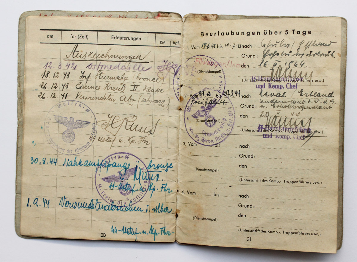 SS Freiwillige Hans Kivimurd'i Soldbuch.