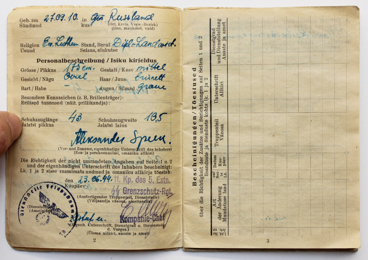 Üks tõsine rindemehe Soldbuch (Leo Tammiksaare kollektsioonis).