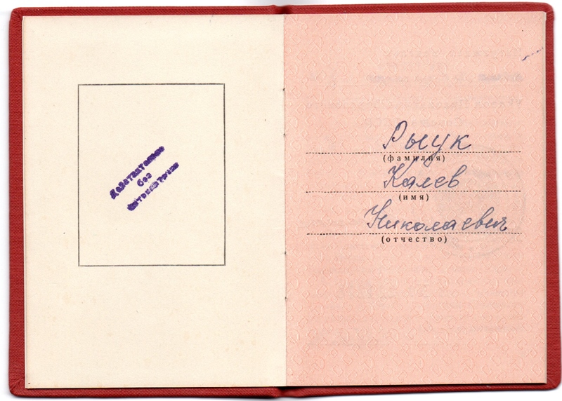 Lahinguteenete medali ajutise tunnistuse vahetas ta punakaanelise dokumendi vastu mingil põhjusel välja alles 1954. aastal. Medal ‘’Võit Saksamaa üle’’ on antud välja NKVD Balti mereväeehituse ehituspataljonide valitsuse poolt.