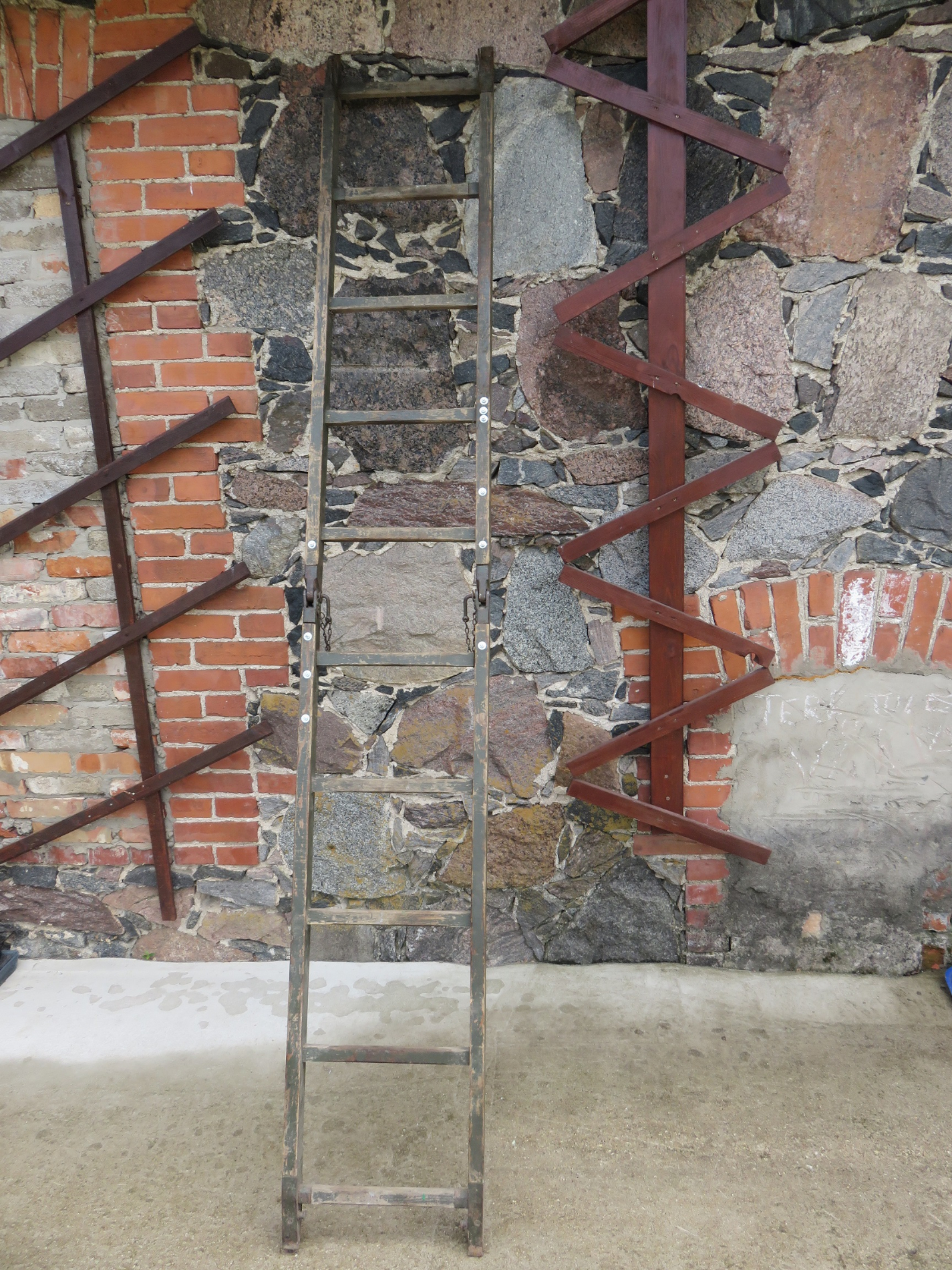 Samast kohast sidemeeste käest tulnud tavaar. Kas just sidega seos, seda ei oska öelda? Redelil imelikud konksud ja nagad otstes. Mõõdud lahtikäivana 270x41cm. Uusi paranduspolte ei ole veel ära võtnud. Teine on pimendamisruloo. 150x200cm. Paistab tehase töö olema.