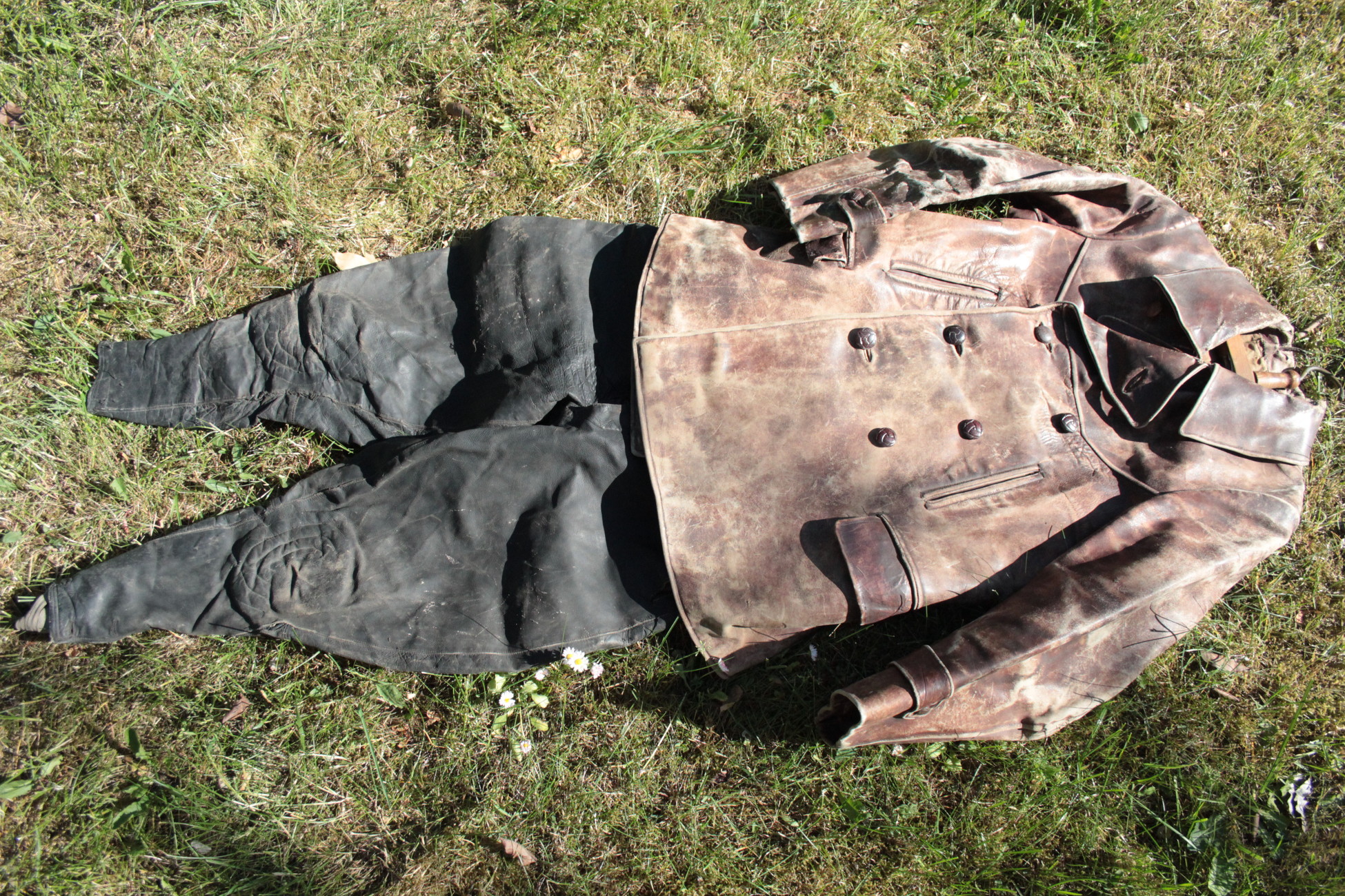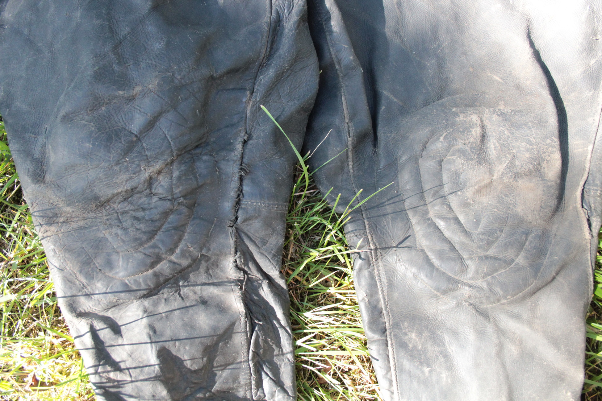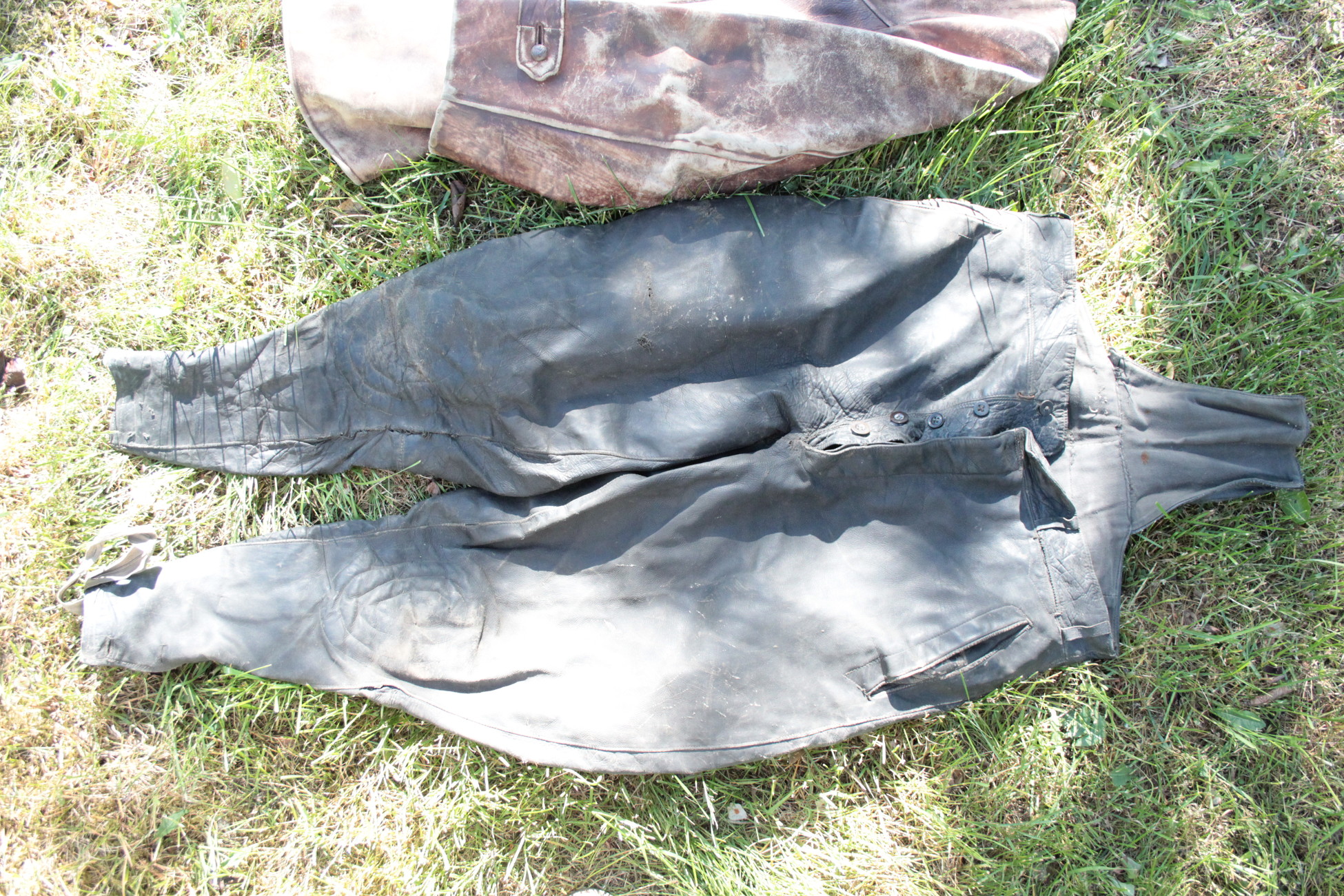 Püksid on ilmselt tsiviil, mootorratturi omad aga vaadates nende teostust ja kvaliteeti siis ütleksin, et EW aegsed. Leides olid küljes omadega läbi olevad EW traksid. Nahk pehme.