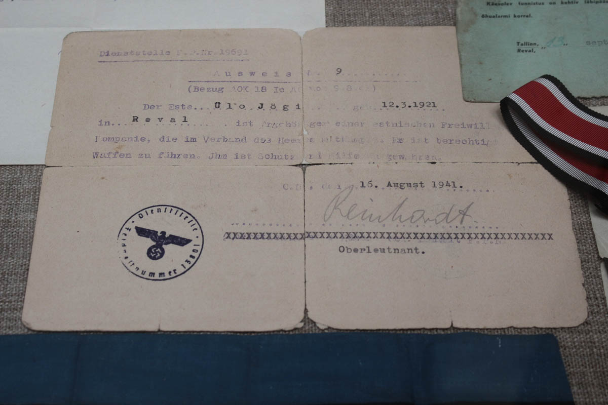 Esimesel dokumendil, mis on välja antud 1941. aasta 16. augustil on kirjas, et eestlane Ülo Jõgi on teenistuses Eesti vabatahtlike kompaniis, mis kuulub Saksa maaväe koosseisu ning tal on lubatud relva kanda. Teine dokument on 2. klassi Raudristi tunnistuse ärakiri (soome vabatahtlik Ülo Jõgi). Kolmandal paberil on kirjas, et eestlane Ülo Jõgi on perioodil 24.06.1941 kuni 10.11.1941 võidelnud Eesti vabatahtlike kompanii "Erna" koosseisus ja lubatakse nüüd koju. Huvitav on veel märge, et kaasa anti ka Soome armee vormiriietus.