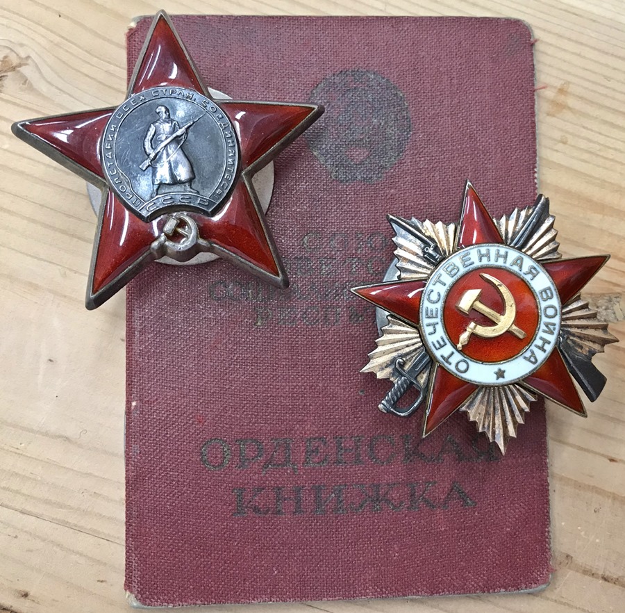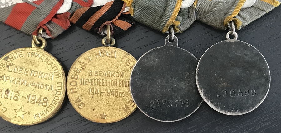 Lahinguteenete medalid 120 488 ja 2 499 378. Varane medal on saadud ilmselt 1942. aasta Detsembris, Velikije- Luki lahingute ( või mõne veel varasema asja ) eest, teine Kuramaal. Arvan, et tegemist on 249. Laskurdiviisi 917. Laskurpolgu võitlejaga, kes täpselt, seda ma hetkel ei tea...
