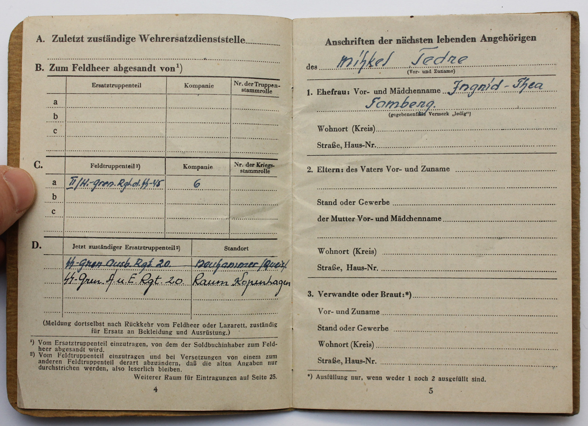 Hetkel on osta.ee keskkonnas müügis üks kakskeelne SB, mis väljastatud 20. SS tagavarapataljoni põhikompanii Unterscharführer Aleksander Laaneväli'le. Kasutaja Kriuks kunagi esitas küsimuse, et kas sellised säästu Soldbuch'e jagati ka 20. ED koosseisule või olid ainult Piirikaitserügementide tarbeks mõeldud. Siia teemasse on postitatud üks samasugune kakskeelne, mis kirjutatud välja 20. ED võitlejale 1945. aasta kevadel Taanis aga hetkel oksjonil olev on veel Eestis välja kirjutatud - nii, et jagati neid ka siin 20. ED koosseisule.