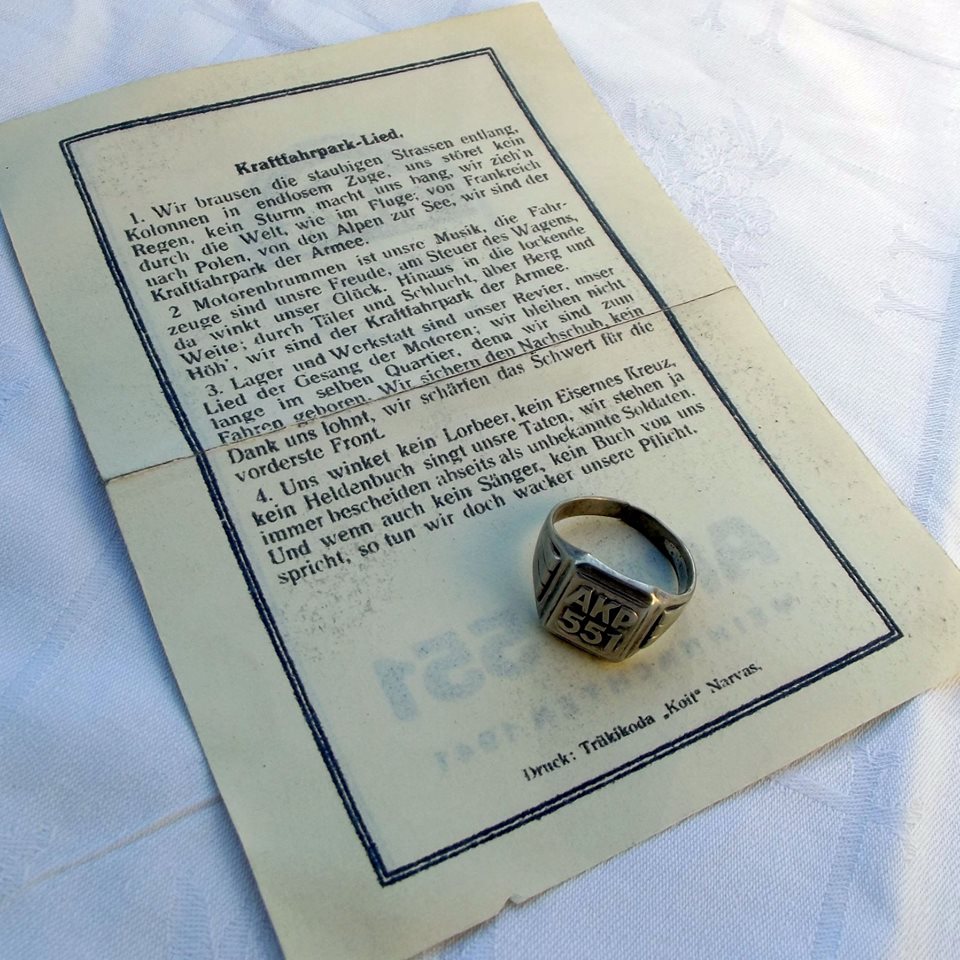 Recently I acquired this ring of Armee-Kraftfahr-Park 551 together with a 1941 Christmas leaflet of the same unit.