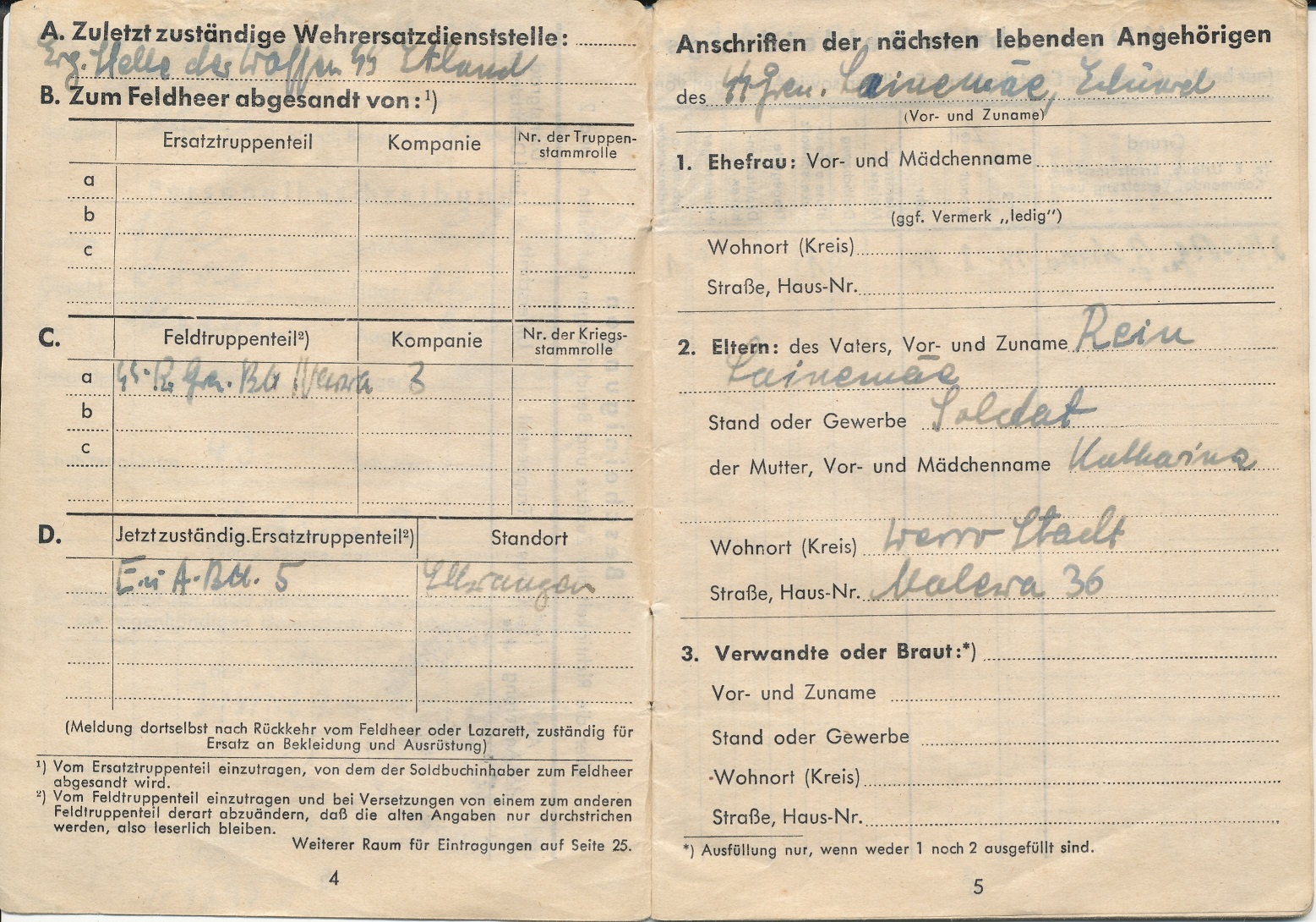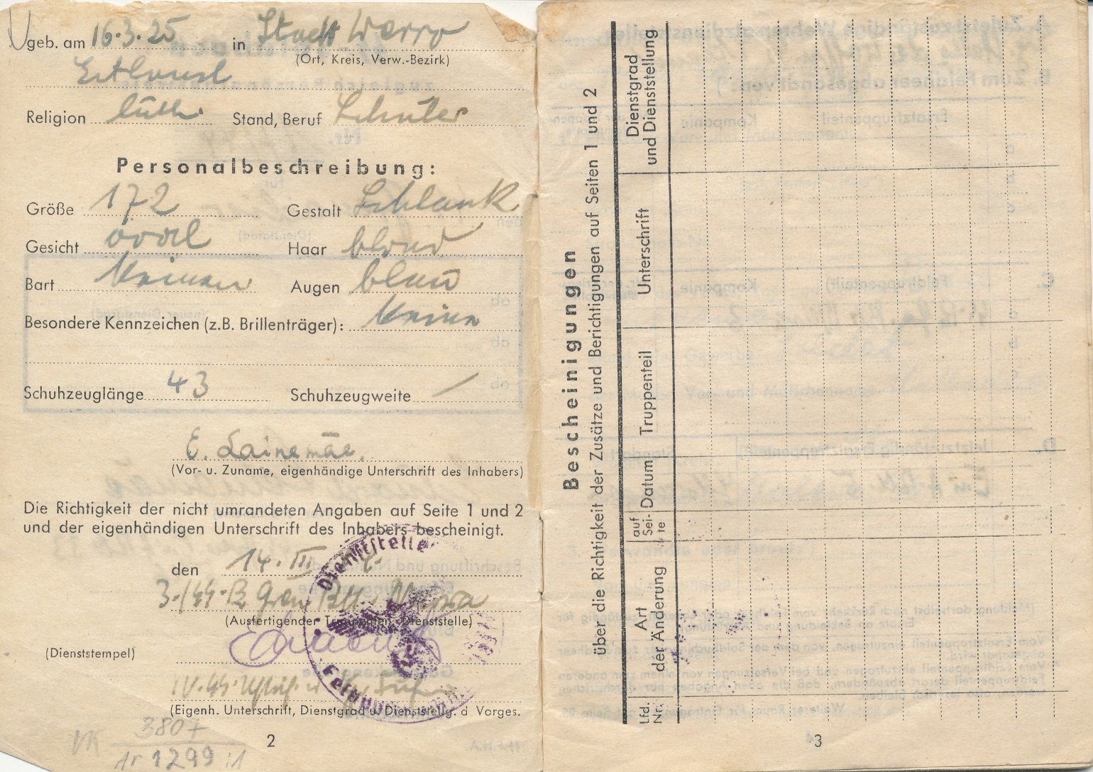 UnterKroon kirjutas:Eelpool kõne all olnud pataljon "Narwa" 3.kompaniisse kuulunud SS Grenadier Eduard Lainemäe Soldbuch ning muud dokumendid ja esemed.