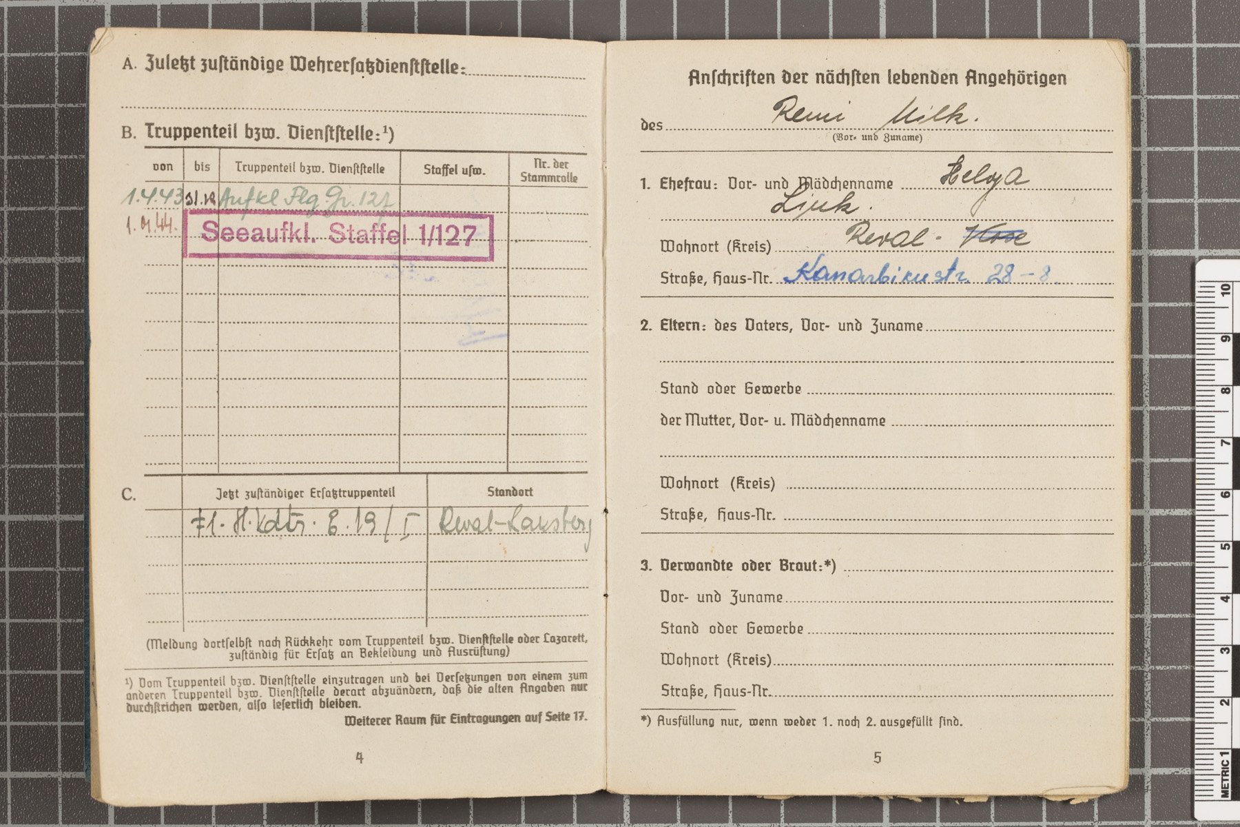 Leutnant Remi Milk'i Soldbuch Eesti Sõjamuuseumi kollektsioonist ...