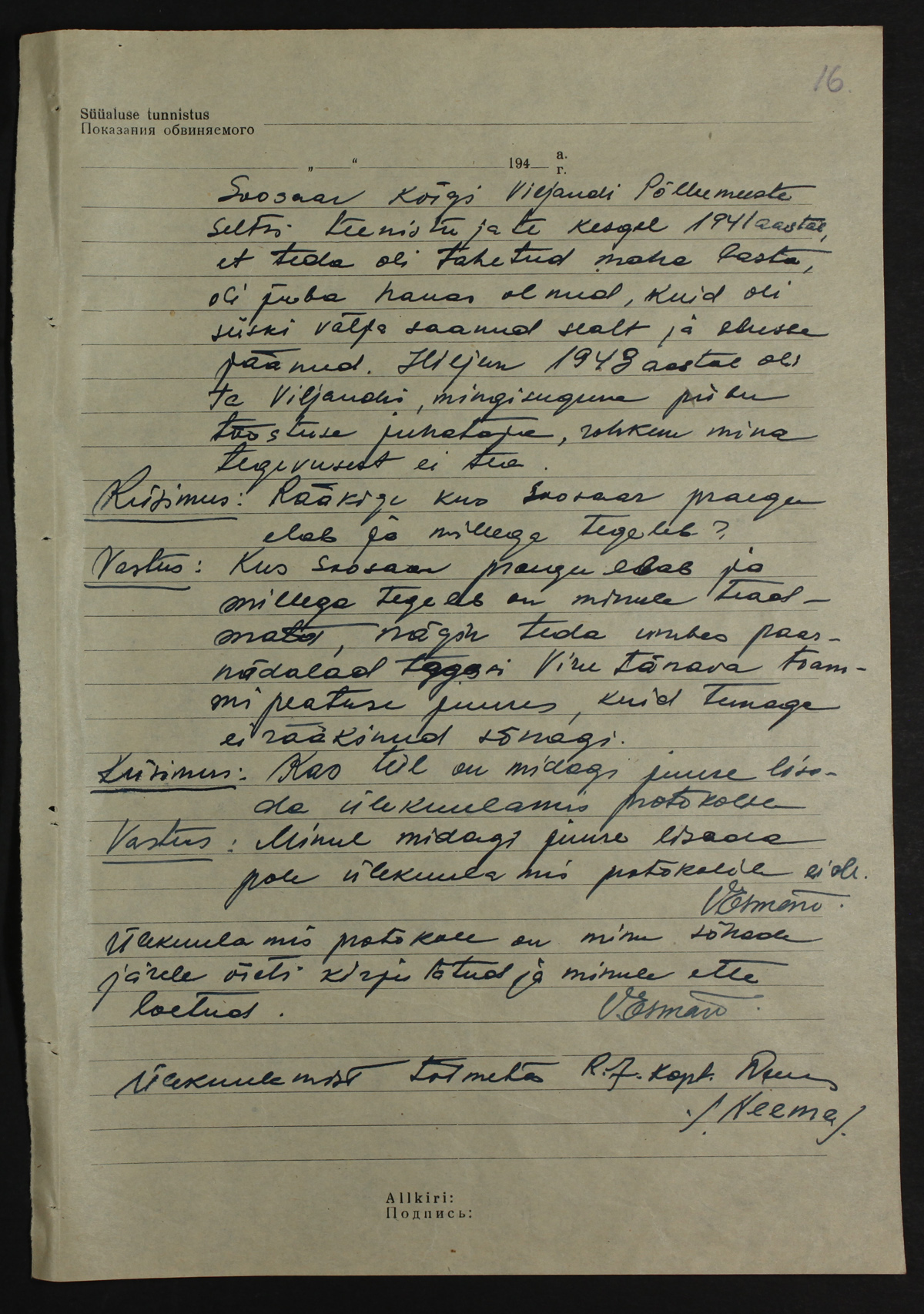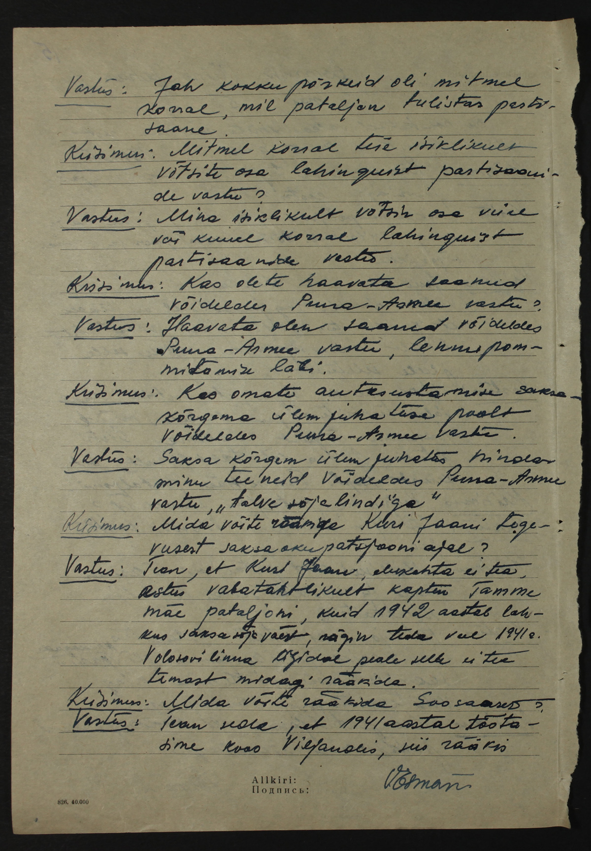Toimikus ei ole mingit juttu 1944. aasta tegemistest, teenimisest Eesti diviisis ega ülendamisest Unterscharführer'iks 1944. aasta septembris.