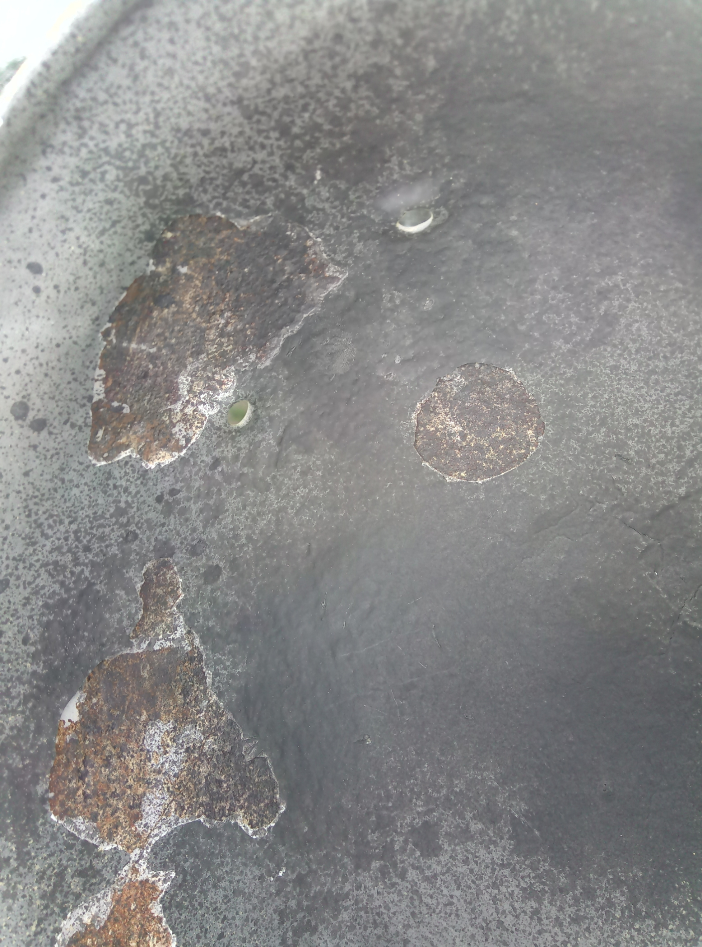 Mida arvavad targemad?? Seest kust uus värv on lahti koorunud paistab alt roostene kiiver. Väidetavalt ka Eestist välja tulnud.