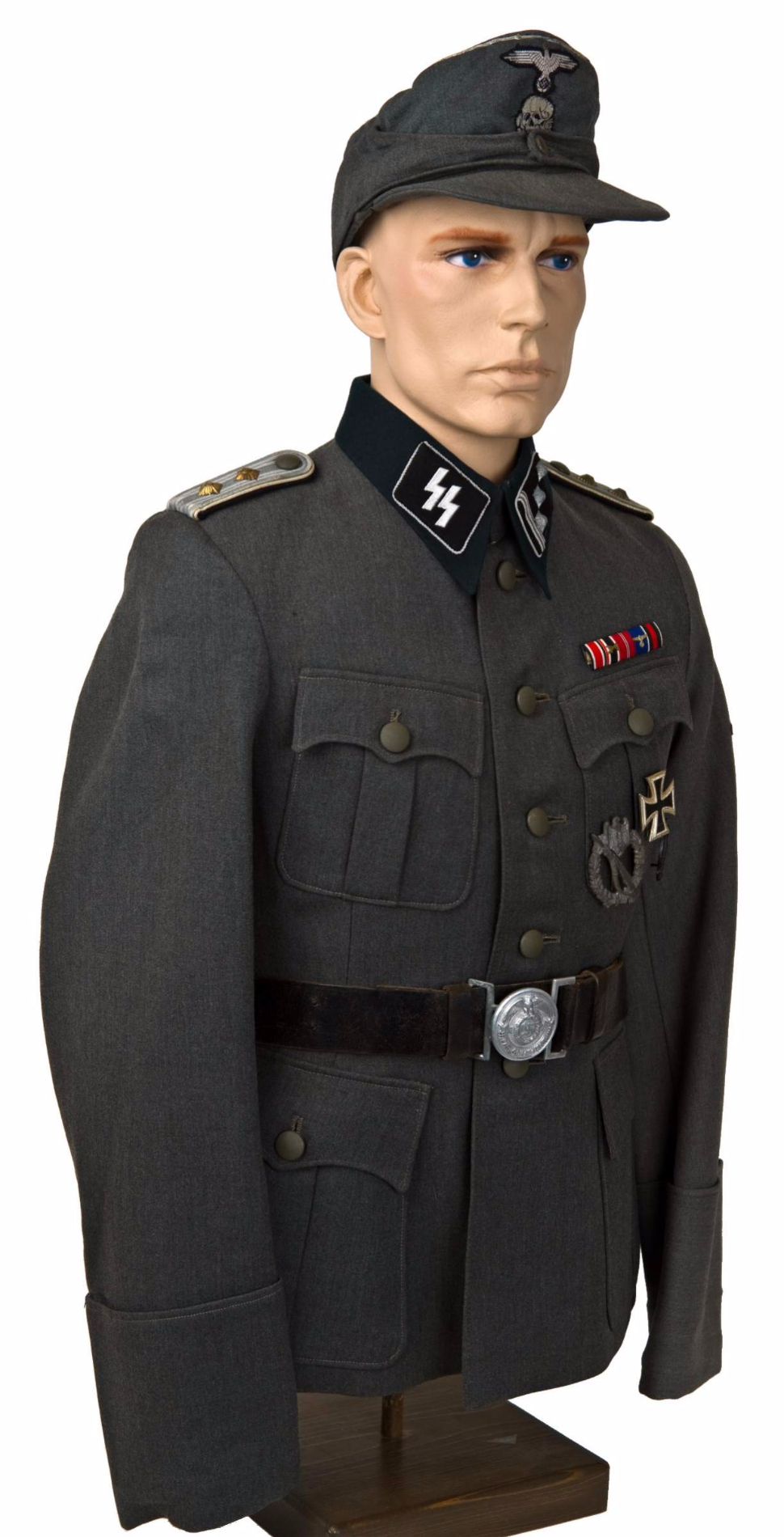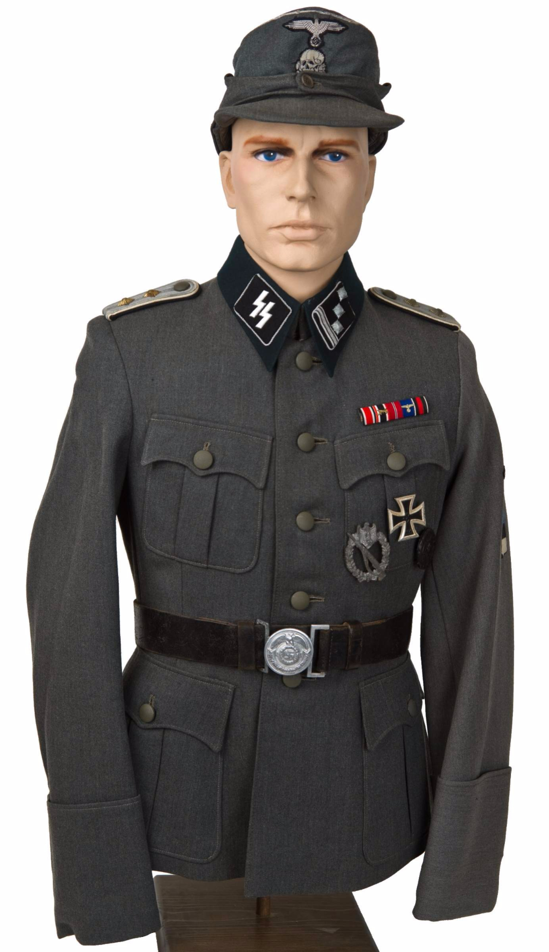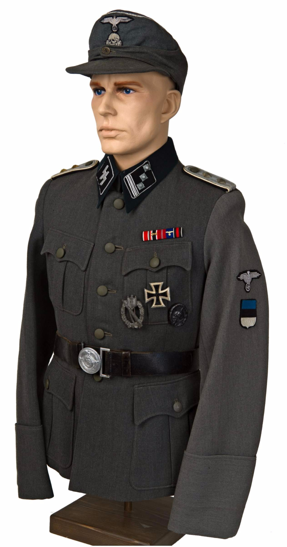 Natuke paremad pildid sellest vormikuuest, mis teema algusesse postitatud. Pildid võetud warrelics.eu foorumist, lisan juurde ka omaniku kommentaari, mis nende piltide juurde oli postitatud: "At MAX III, the first MAX in Baltimore, Bill Shea had this grouping one of his beaters got out of Germany. It had two tunics (this SS-Hauptsturmfuhrer and an SS-Obersturmfuhrer, which had the foreign volunteer collar tab in addition to the sleeve shield), two pair of pants, two overseas caps (piping in white) and two greatcoats. The original owner, (I've got to find it), was wounded in the field and a medic cut the left sleeve to get to the wound and treat it. He ended up in a hospital in Germany at the end of the war. The first buyer of this tunic didn't like the cut (and repaired) sleeve so he substituted another one for it, transferring the insignia and discarding the original sleeve. As you can see, the dyes didn't match up exactly, which is not all that unknown. I bought this from Shea when it came back to him. "