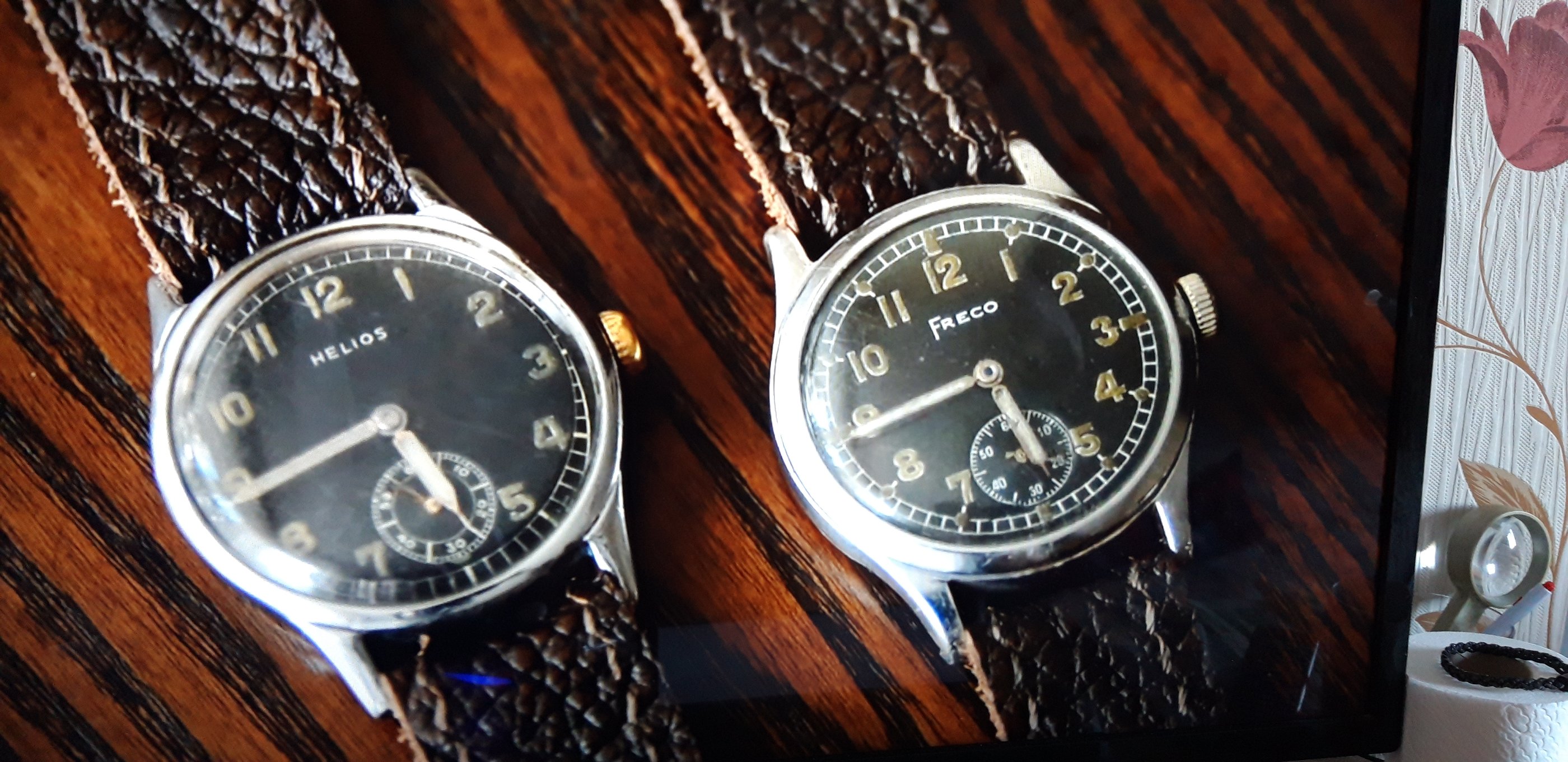 leidsin intrnetist huvitava teema, mida meil varustuse all ei ole. kelli hakkasid tootma Saksa armee jaoks 2 Sveitsi firmat Helios ja Freco, nad olid põrutuskindlad,roostevabast korpusega ja plast klaasiga ning musta sihverplaadiga.rihm oli valmistatud lehmanahast.kelli hakati tootma 1930 paiku.kella tagaküljel oli D kella nr.H täht heer.kuna kell oli saksa riigi omand,kanti kella nr, sõduri raamatusse sisse ja ta pidi selle tagastama, või kadumise korral trahvi maksma . Freco firma kellad on haruldasemad,kuna neid tehti vähem