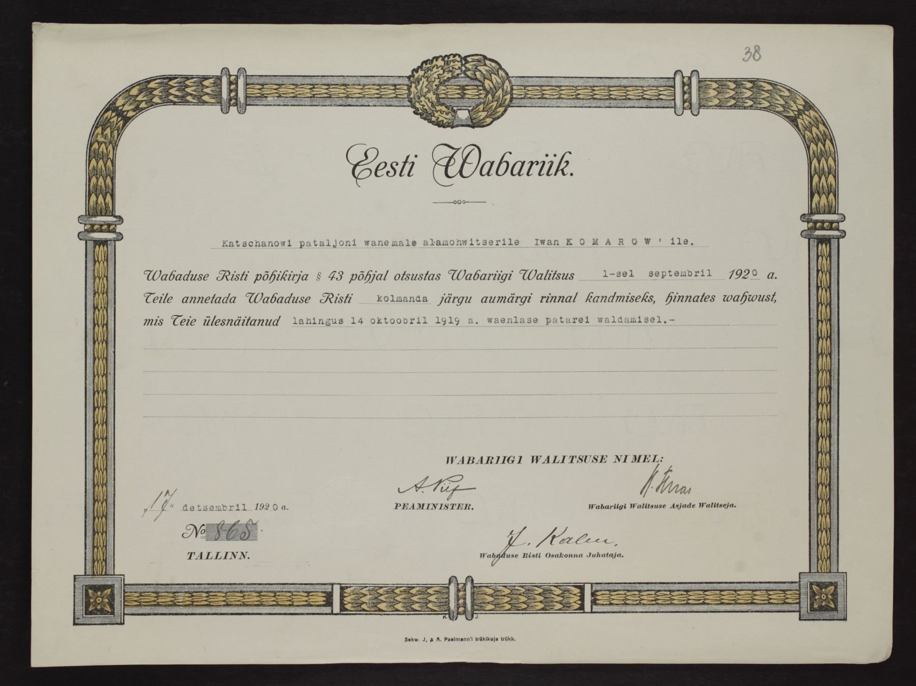 Vabadusristi tunnistused ...