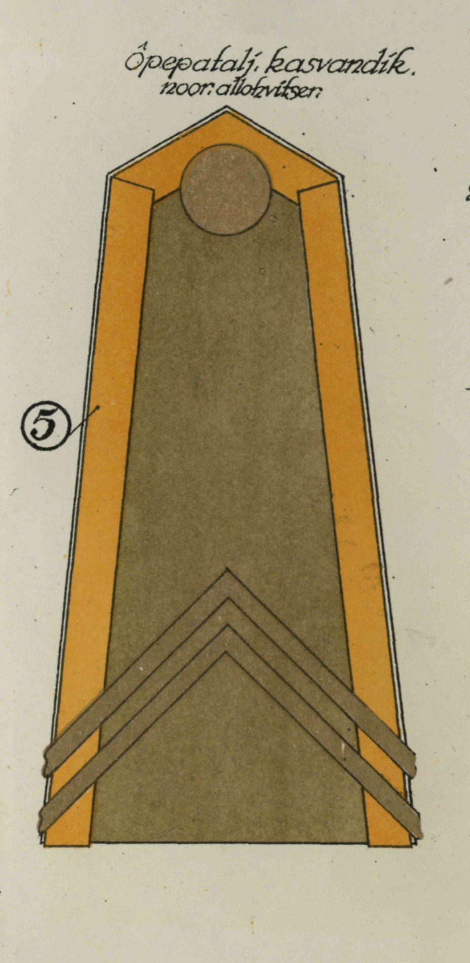Tekkis küsimus pealkirjas nimetatud õlakute kohta. 1926. aasta vormikirjeldusest ja hiljuti ilmunud EW vormiriietuse raamatust loen välja / saan aru, et ümber serva õmmeldud paelaga õlakud on Allohvitseride Kooli õppepataljoni kasvandiku omad ja ilma selle paelata on üleajateenija allohvitser? Ehk siis see pael peaks tähendama Allohvitseride Kooli?