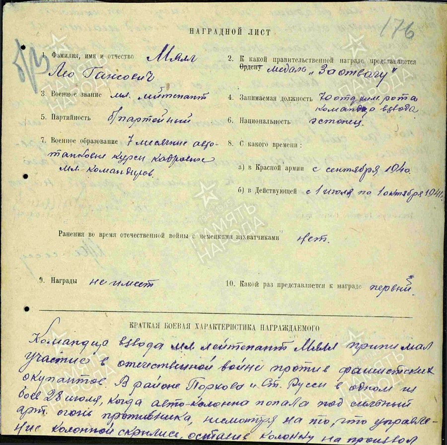 7. Eesti laskurdiviis, 86. Üksiku sanitaarpataljoni autotehnik leitnant Leo Mäll. Lahinguteenete medalite nr. 120488 ja 2499378 kavaler.