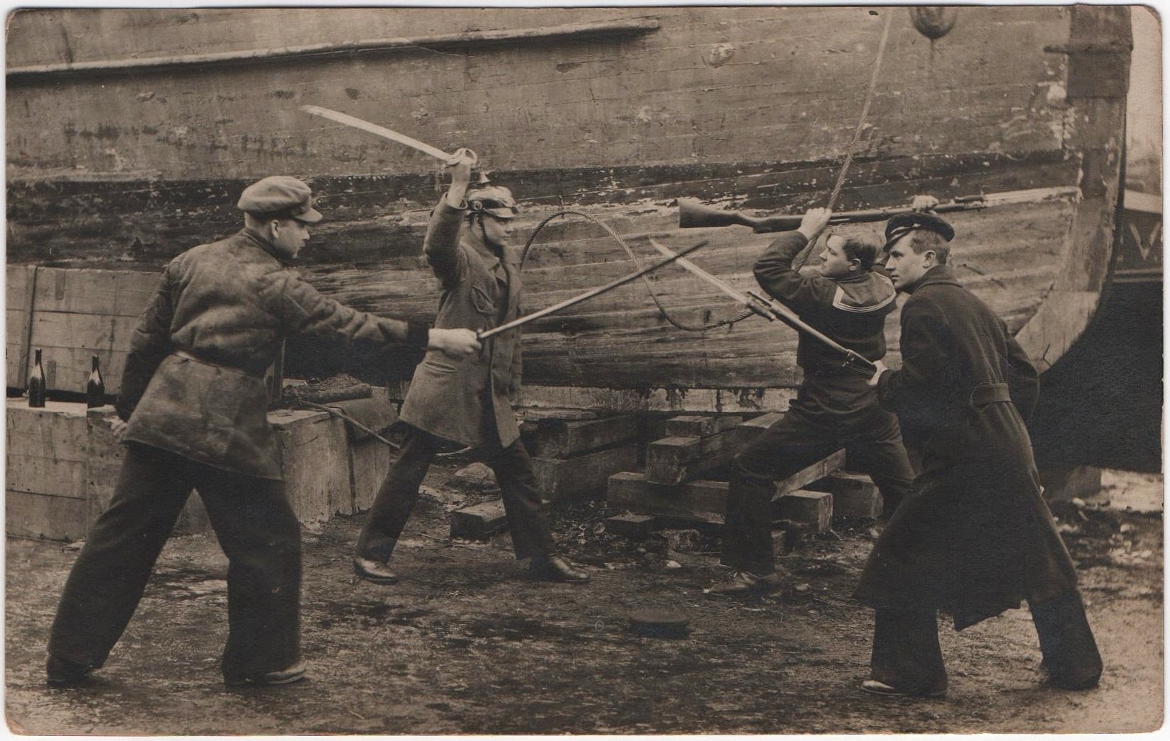 Eesti Mereväe õppekomando (Mereväe Ekipaaži õpperühm) 1919.a. Algselt asuti Tallinna sadama tollimajas, fotod sellest ajajärgust. Esimesel fotol (mehed relvadega) info: Merewäe õpe-komando Tallinnas 10-mal Mail 1919 aastal ja meeste nimed - Lamberg, Ilves, Akelman, Järwan, Werliin, Pommer, Treewing, Sander, Laaren, Meiusi, Kampa, Peitebaum, Stinberg, Gründal, Mikk, Peekman, Rõemus, Liik, Otsman, Põitel, Pellman, Pung, Krüninberg, Nõmberg, Eeward, Treisalt – või umbes nii, käekiri pole just parim.