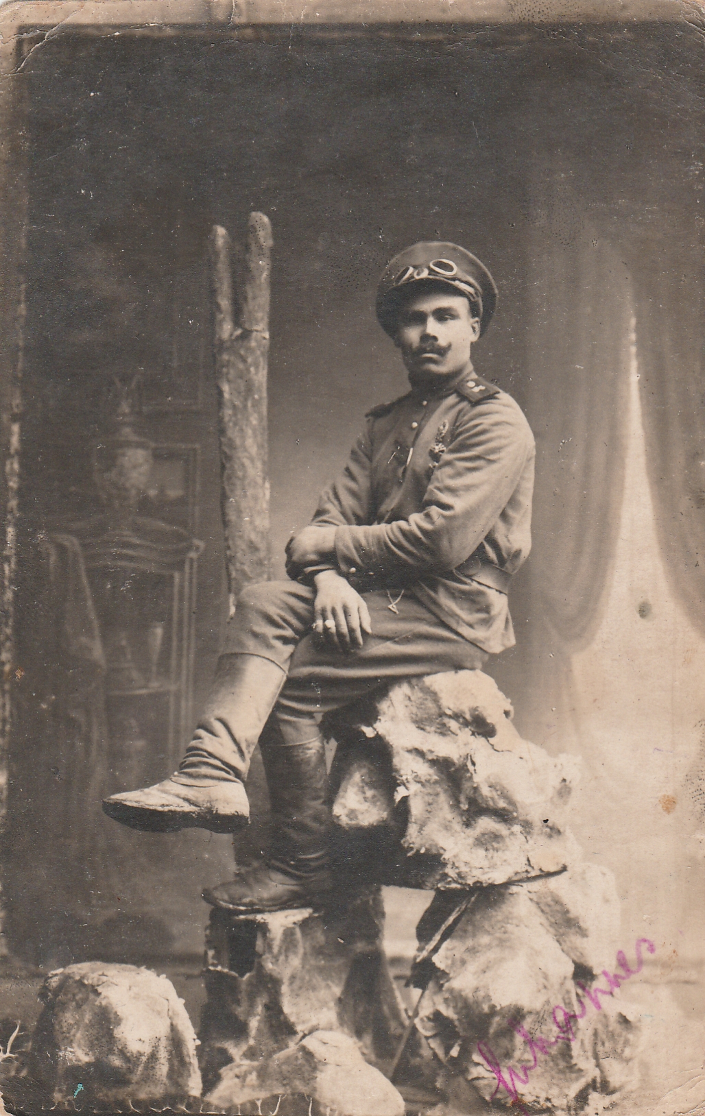 Vist siiski mitte... samas ei anna ikka rahu. Palju on mainitud 1915-nda aasta vormist Üksik-tagavara samokatšikute roodule, millest küll muud erilist pole välja lugeda, kui "automobiilijuhtide-tüüpi" furaška, mis justkui ka Juhanil peas on. Tolmuprillid võisid ka autojuhtide varustusse kuuluda. Vähemalt ühel fotol olen näinud selliseid prille ka samokatšik-ohvitseri furaškal. Kas keegi oskab Juhani märgimajandust kommenteerida, mis polgu jne ?