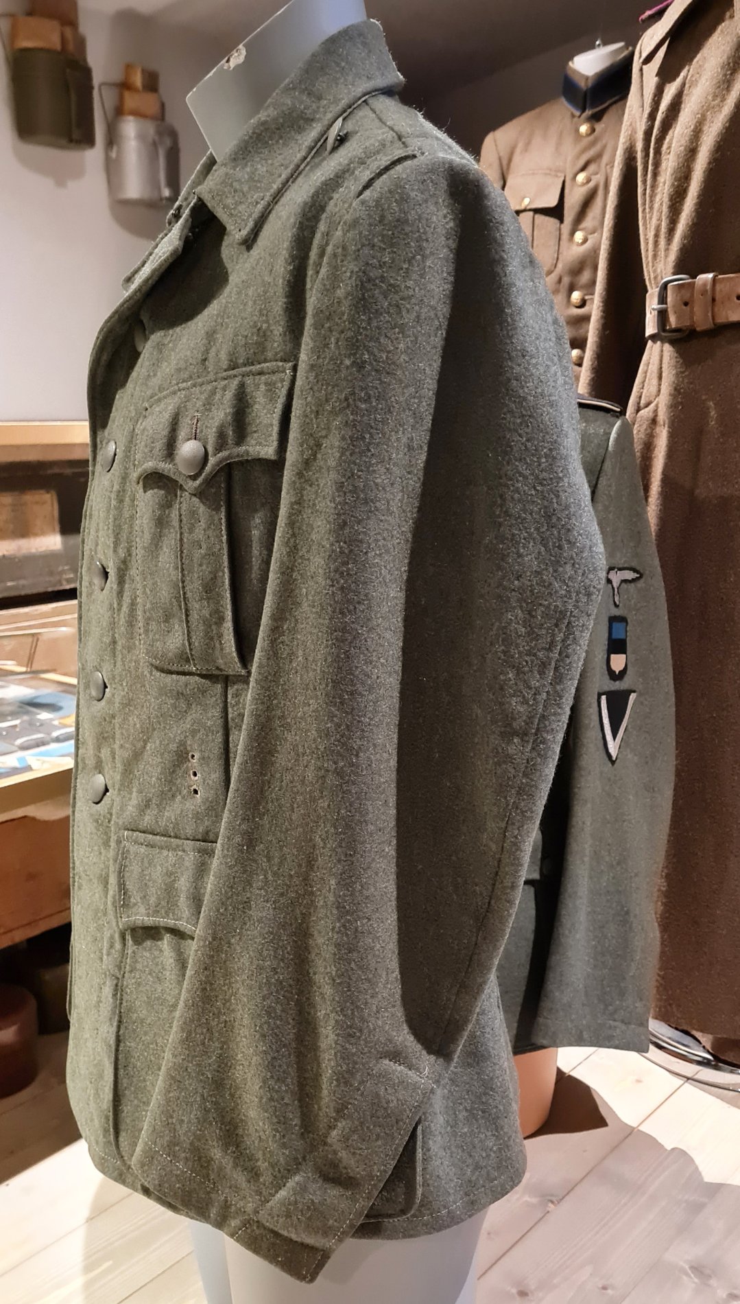 Embleemide jälgi näha ei ole ja kõlbab peale ajada WH, W-SS embleemid või teha Politseipataljoniks (näiteks meie 36. Politseipataljonile jagati selliseid M41 kuubesid). Lisaks saksa templitele on sees ka Soome armee (SA) templid.
