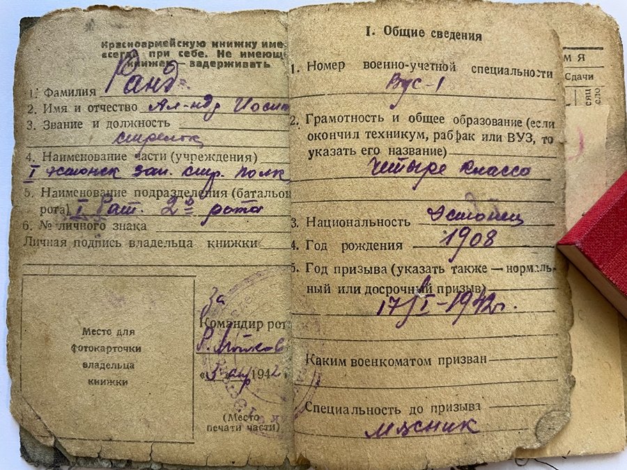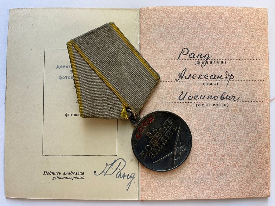 249. laskurdiviisi 779. suurtükiväepolgu 5 patarei relvur? jefreitor Aleksander Rand. Lahinguteenete medali 2499777 kavaler. Kuramaa lahingutes Kblieniki? Küla juures 22.03.1945.a hävitas suurtükimeeskonna koosseisus 100 meetri kaugusel kaitseliinist vastase käsitulirelvade turmtule all otsesihtimisega kolm raskekuulipildujat ja lõid tagasi vaenlase vastupealetungi. Millega toetas oma jalaväge ja võimaldas vägedel edasi liikuda.