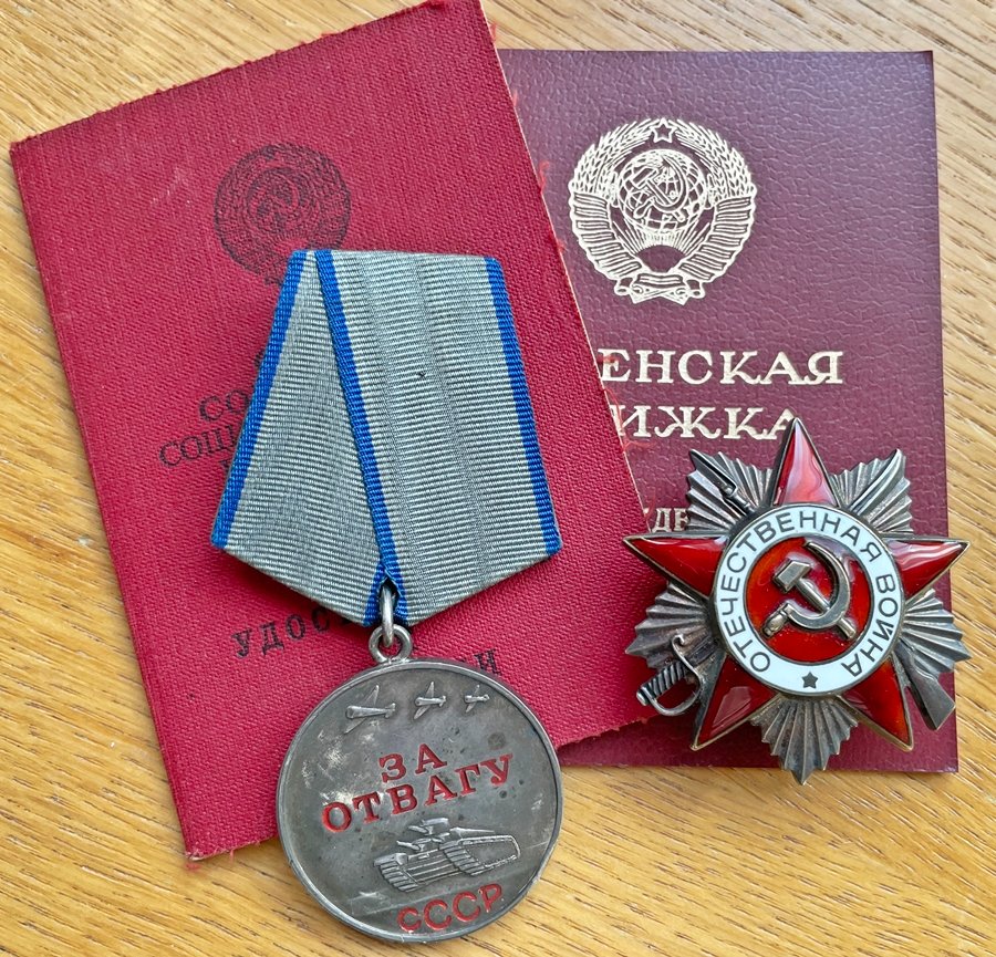 Oksjonilt läbi käinud Lahinguteenete medal 2499658 ja Vapruse medal 2353356, mõlemaga ilmselt autasustatud Kuramaa lahingute eest.